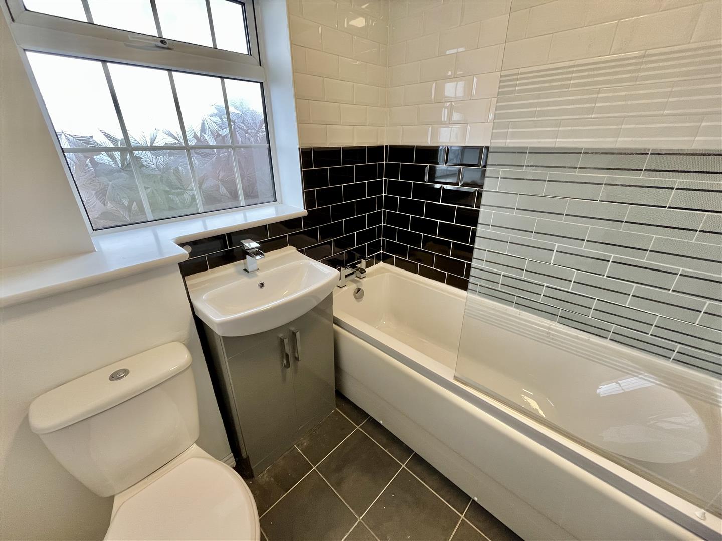 Bathroom - 1.93m x 1.68m (6'04 x 5'06) - Featuring a contemporary three piece suite comprising a bath with electric shower over and tiled splashbacks, vanity washbasin unit and low level w.c. Radiator, obscured rear aspect window.
