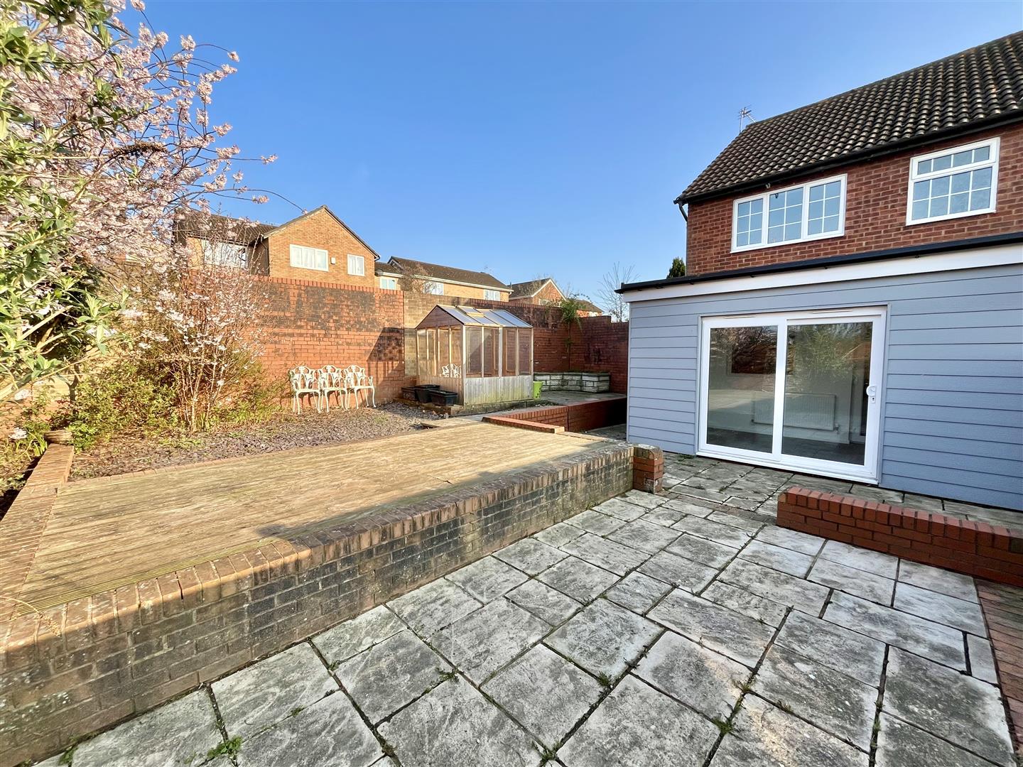 The good size fully enclosed rear garden features a large patio, and a raised decking ideal for hosting barbecues.