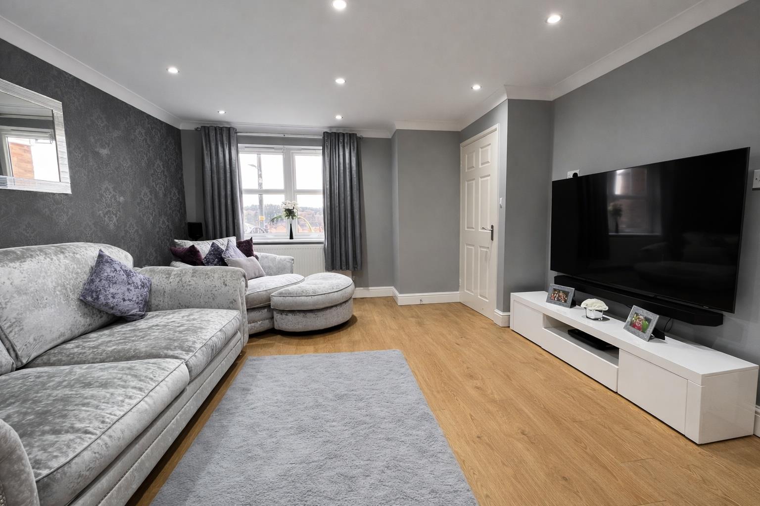 Lounge - 4.22m x 4.04m (13'10 x 13'03) - Inset ceiling spots, dimmer switch, coving, power points with usb points, single radiator, tv point, continuation of the wood laminate flooring, door to understairs storage cupboard with lighting, hanging rails and shelving, front aspect upvc double glazed window overlooking the front garden and towards the field and playing park.