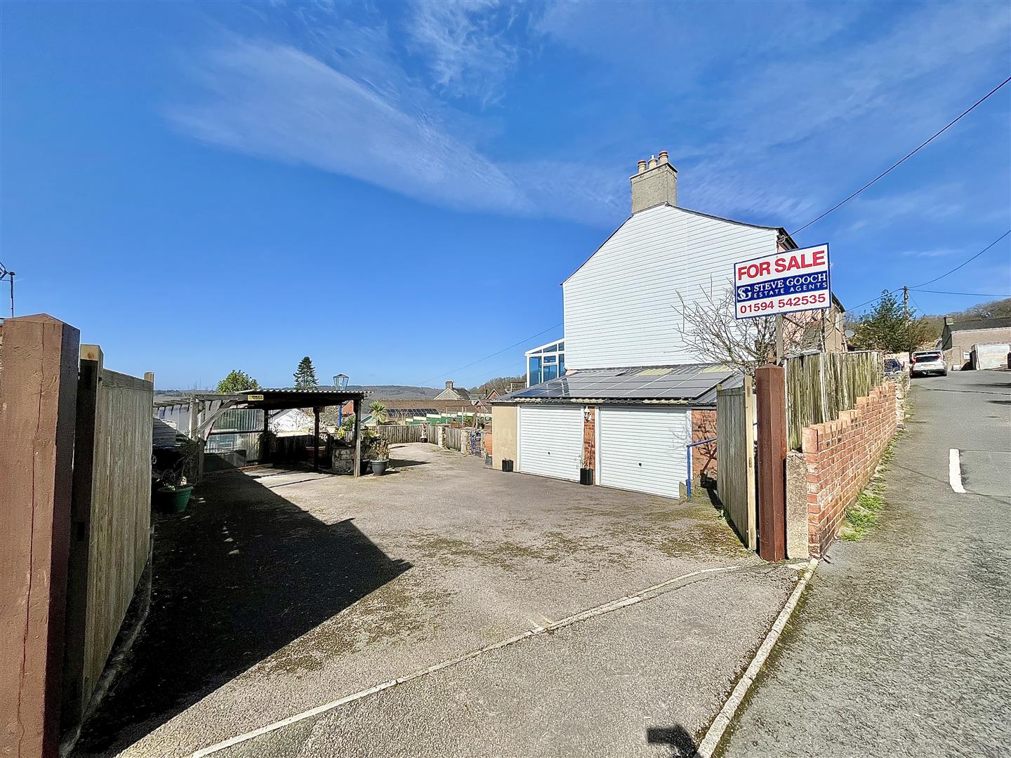 Outside - A pair of wooden gates open onto a spacious tarmac driveway with a single carport, providing ample parking for multiple vehicles. A charming feature well sits within the driveway, while access to the double garage is available alongside steps leading up to the front entrance. At the rear of the property, the decked veranda extends from the conservatory, offering the perfect spot to take in the breath-taking views. The garden is primarily laid to lawn, complemented by a rockery, scattered shrubs, and small trees. Additionally, there are two greenhouses, ideal for gardening enthusiasts.