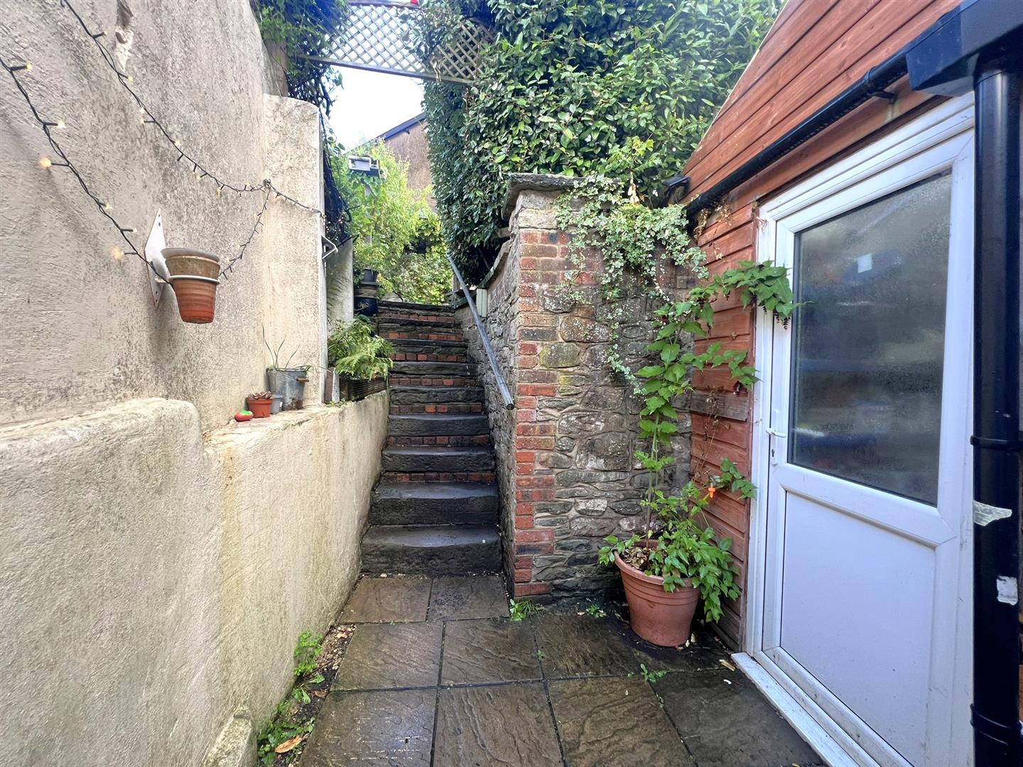 Outside - A pedestrian entrance to the side leading through to a useful store and workshop area, and onwards to the rear garden.
