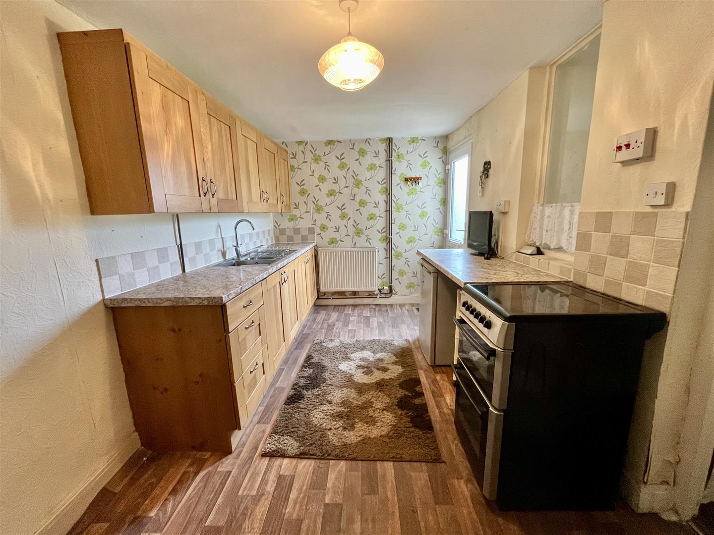 Kitchen - 4.93m x 2.41m (16'02 x 7'11) - Fully fitted wall and base level units with laminate worktops and a stainless steel one and half bowl sink unit. Space for a gas cooker and an undercounter fridge/freezer, radiator, door leads through to;