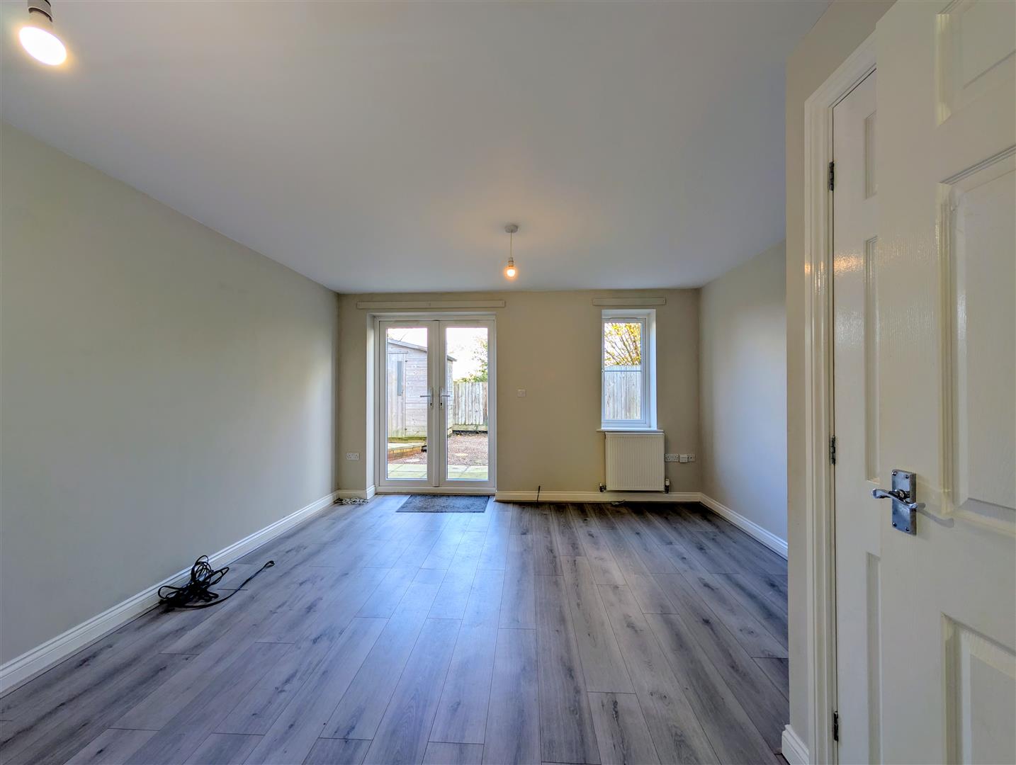 Lounge - 4.19m x 3.94m (13'09 x 12'11) - A bright and comfortable reception room featuring wood-effect flooring, television and power points, a radiator, and a large storage cupboard under the stairs. Rear aspect UPVC double-glazed window and UPVC double-glazed French doors opening out to the rear garden.