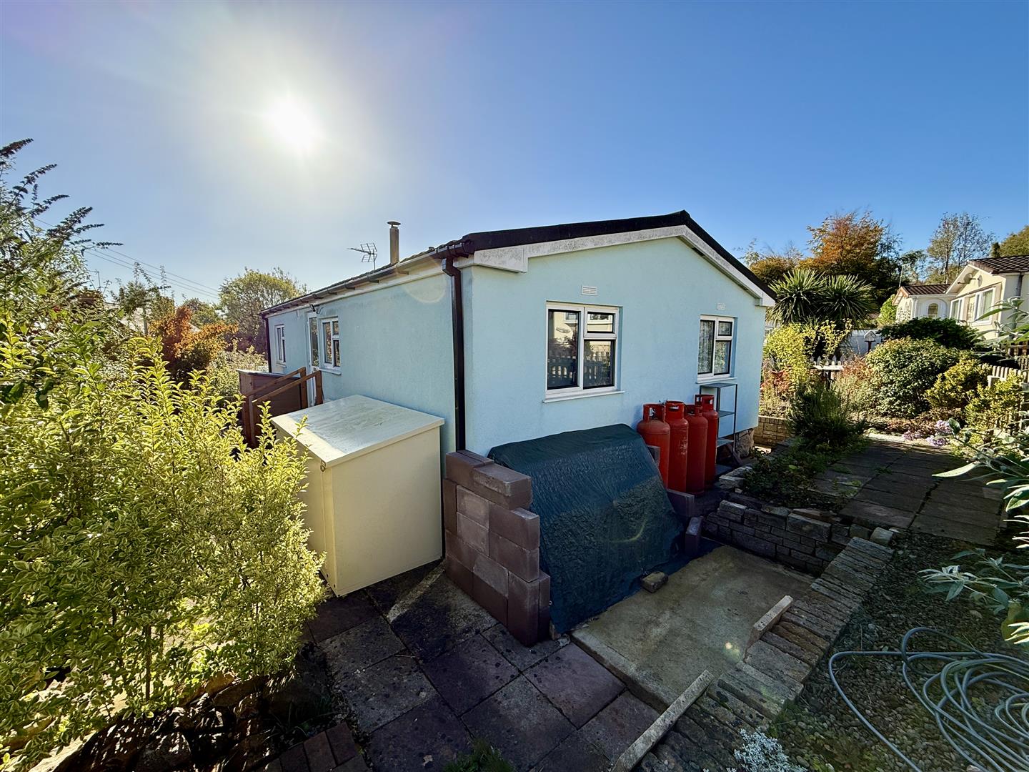 Outside - Wrap around garden, floral boarder, side access down both sides of the property which leads to the rear garden, storage sheds.