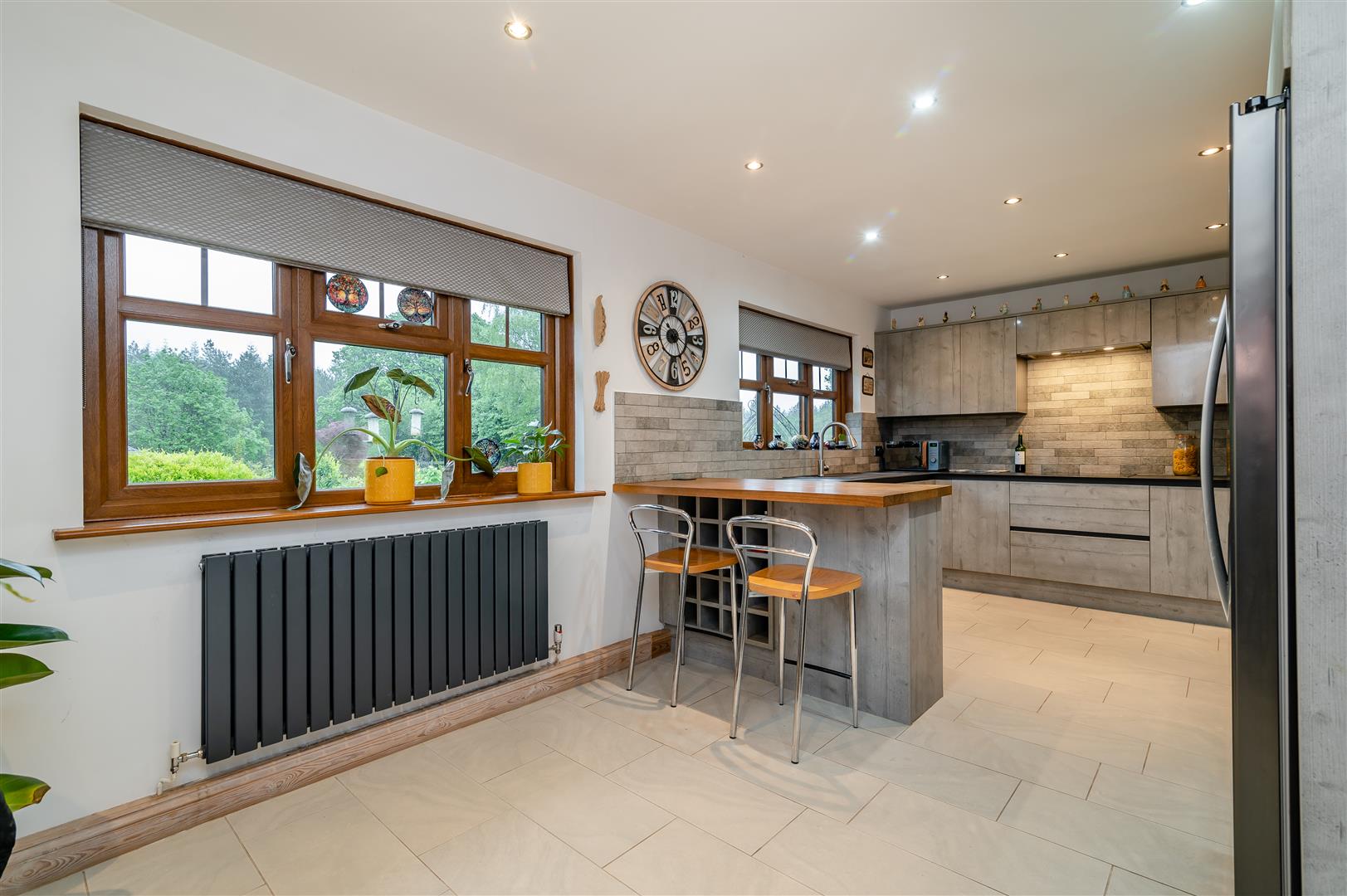 Kitchen/Diner - 3.00m x 5.97m (9'10 x 19'7) - Two rear aspect UPVC double glazed windows, radiator, range of wall, draw and base mounted units, plastic one and a half bowl drainer unit with tap over, Neff built in oven, space for fridge freezer, built in dishwasher, induction hob, extractor fan, power points, inset ceiling spotlights.