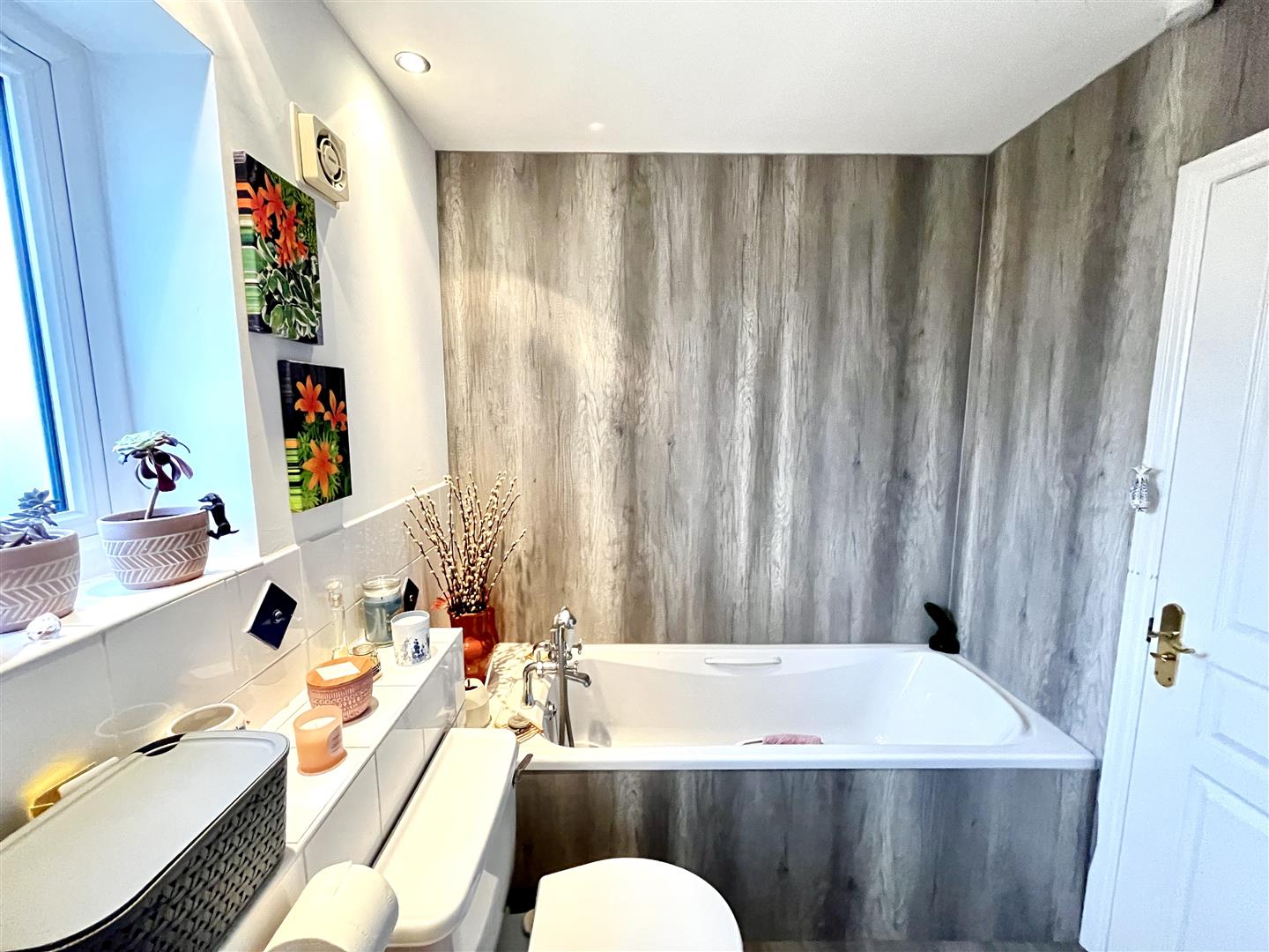 En-Suite - 1.96m x 2.44m (6'05 x 8'00) - Front aspect double glazed upvc frosted window, panelled bath with bath taps over, close coupled w.c, sink with tap over, inset celling spotlights, extractor fan.