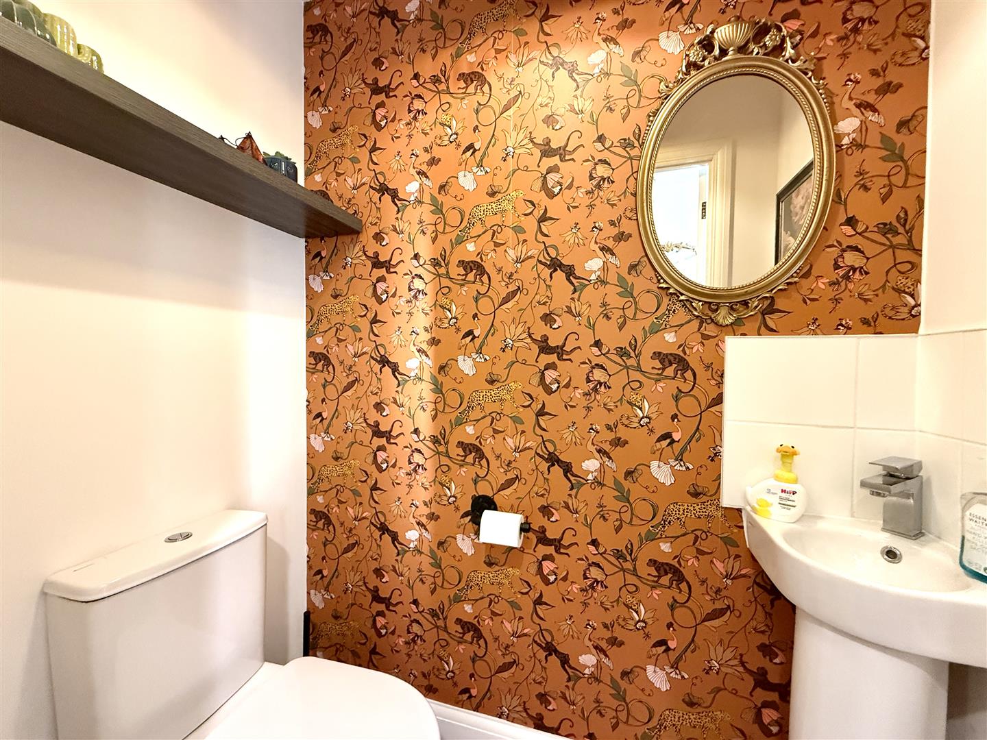 Cloakroom - 1.60m x 0.91m (5'03 x 3'00) - Close coupled WC, sink with tap over, radiator, extractor fan, shelving.