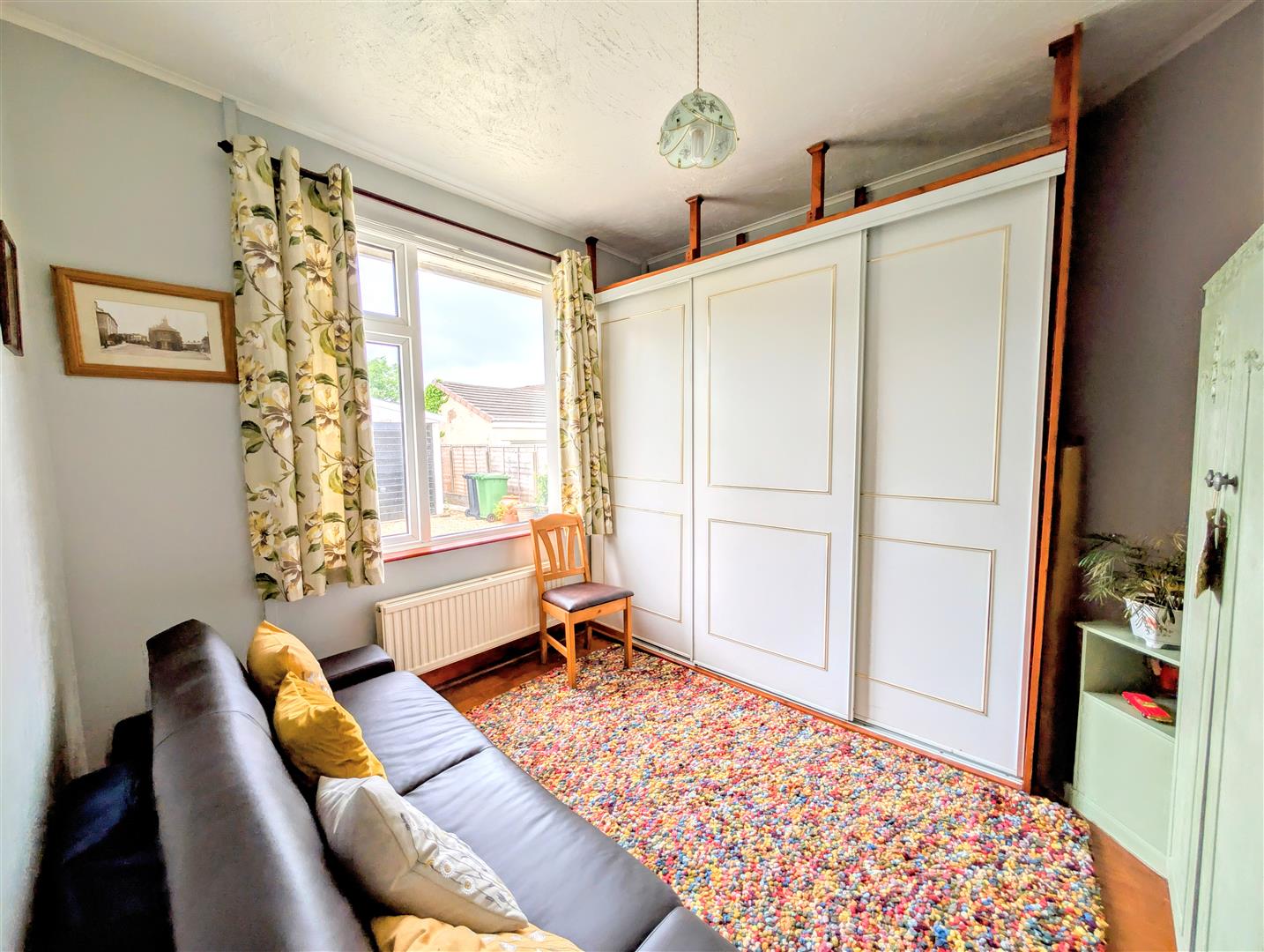 Bedroom Three - 3.02m x 3.33m (9'11 x 10'11) - Wooden parquet flooring, radiator, power points, rear aspect double glazed upvc window, triple sliding doors into built in wardrobe with storage and shelving.