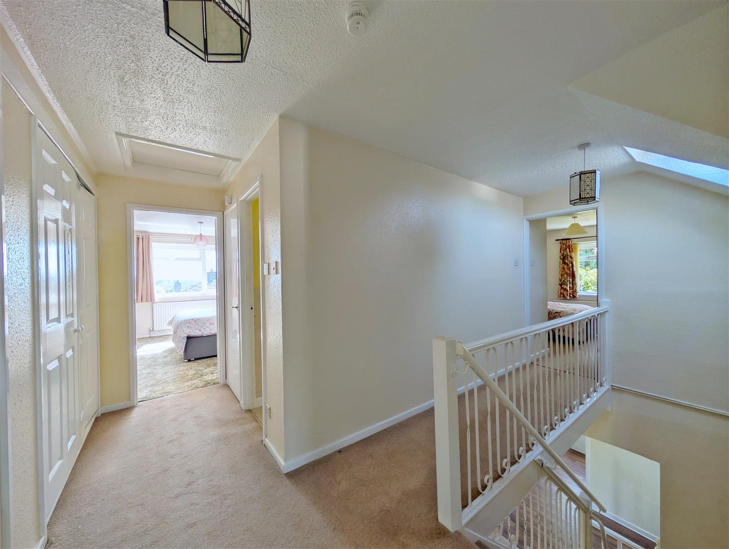 Landing - Extensive range of fitted wardrobes with hanging rails and shelving, airing cupboard housing the boiler. Door into: