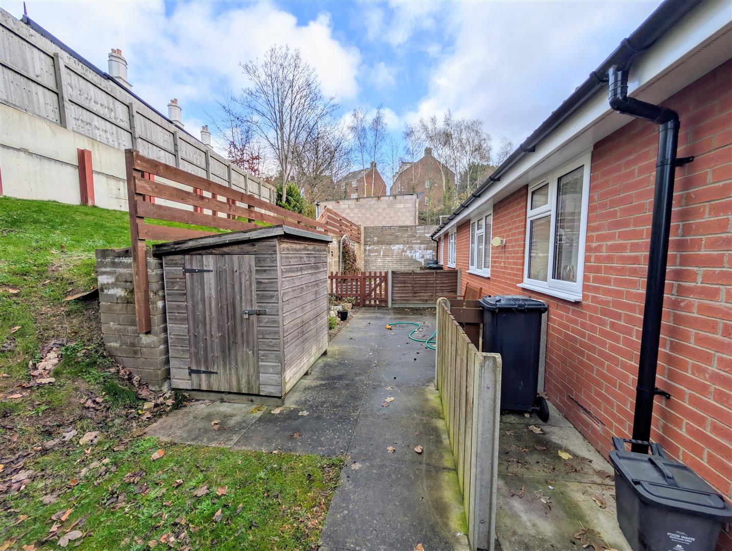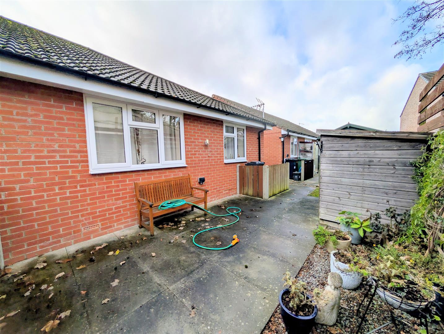 Outside - The property benefits from a communal parking area to the front, leading to a lawned section and small patio adjoining the conservatory, with a pathway running along the side of the bungalow to the rear garden which includes a patio seating area, outside tap, wooden garden shed and bin store; the garden is mostly enclosed, with the potential to fully secure the remaining boundary with a simple fence addition if desired.