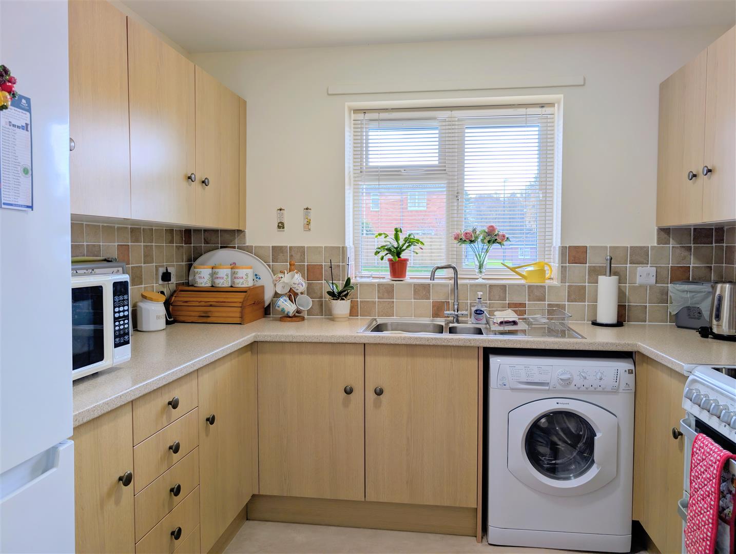 Kitchen - 9'03" x 8'01" - Fitted with a range of base, wall and drawer units with rolled-edge worktops, 1?-bowl stainless-steel sink with mixer tap, space and plumbing for a washing machine, space for a cooker and fridge-freezer, part-tiled walls, power points and appliance points. Houses the Ideal combination boiler. Front-aspect uPVC double-glazed window.