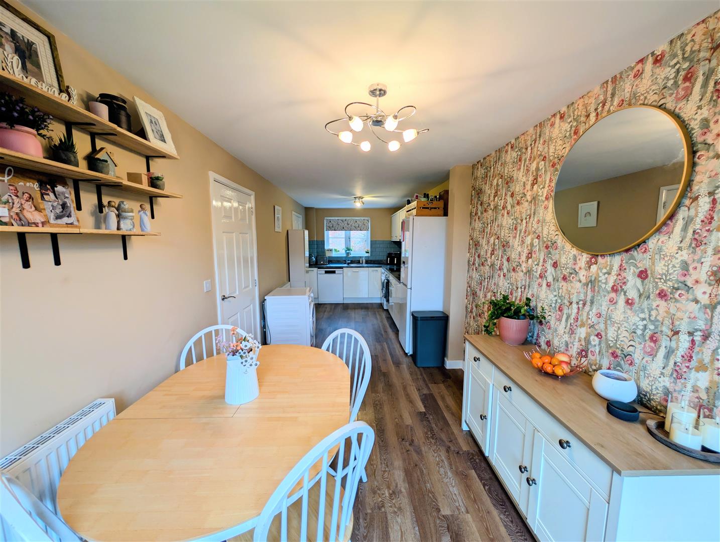 Kitchen/ Diner - 2.44m x 7.24m (8'00 x 23'09) - Fitted with a range of base, wall and drawer-mounted units. Stainless steel single bowl sink with drainer and mixer tap, fitted oven with four-ring electric hob, stainless steel splashback and cooker hood. Space and plumbing for washing machine and dishwasher, and space for fridge/freezer. Part-tiled walls, power and appliance points, front-facing double-glazed uPVC window and a generous dining area with radiator, power points and double-glazed uPVC double doors opening onto the patio.