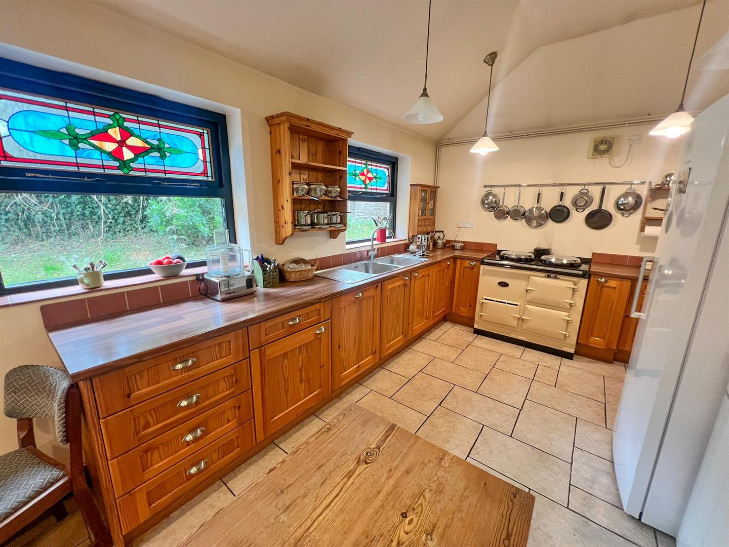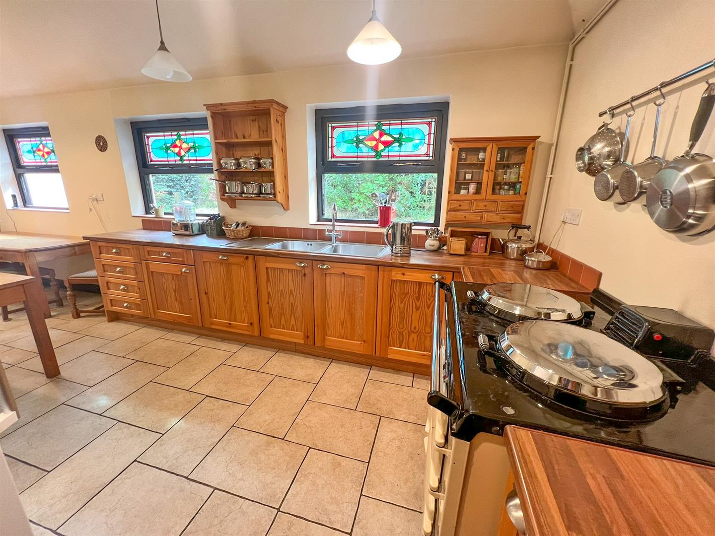 Kitchen/Dining Room - 7.04m x 3.00m (23'01 x 9'10) - Kitchen- Double bowl, single drainer sink unit with mixer tap over, rolled edge worktops, quarry tiled upstands, range of base units, gas fired AGA for cooking, ceiling lights, tiled flooring, power points.
