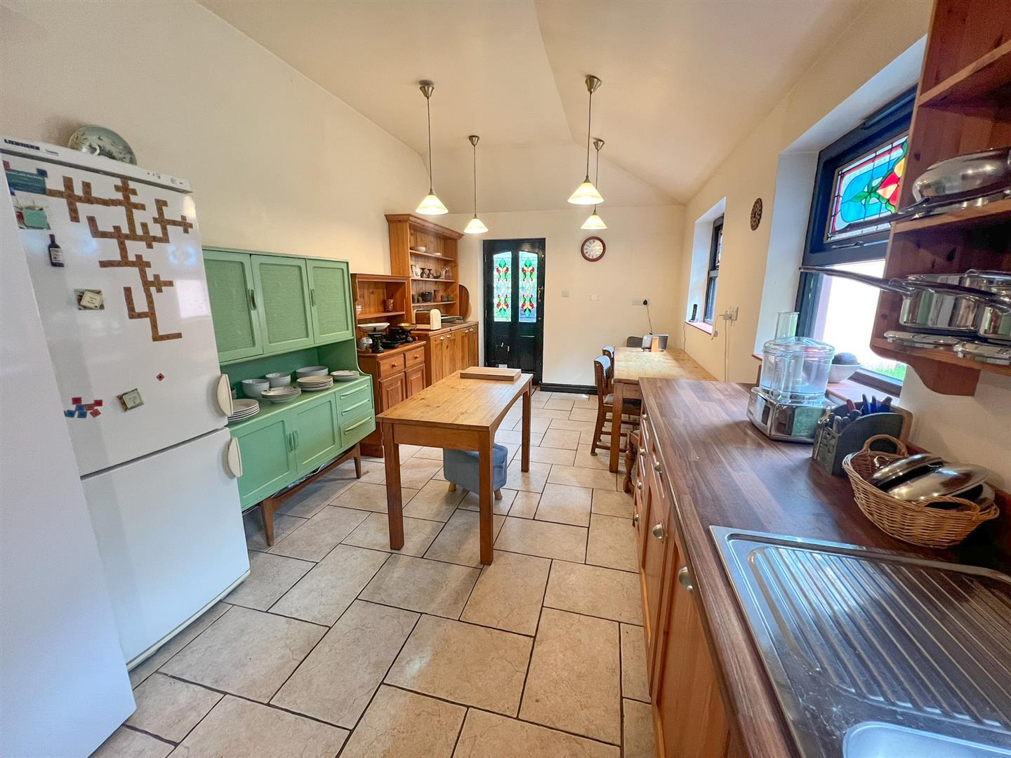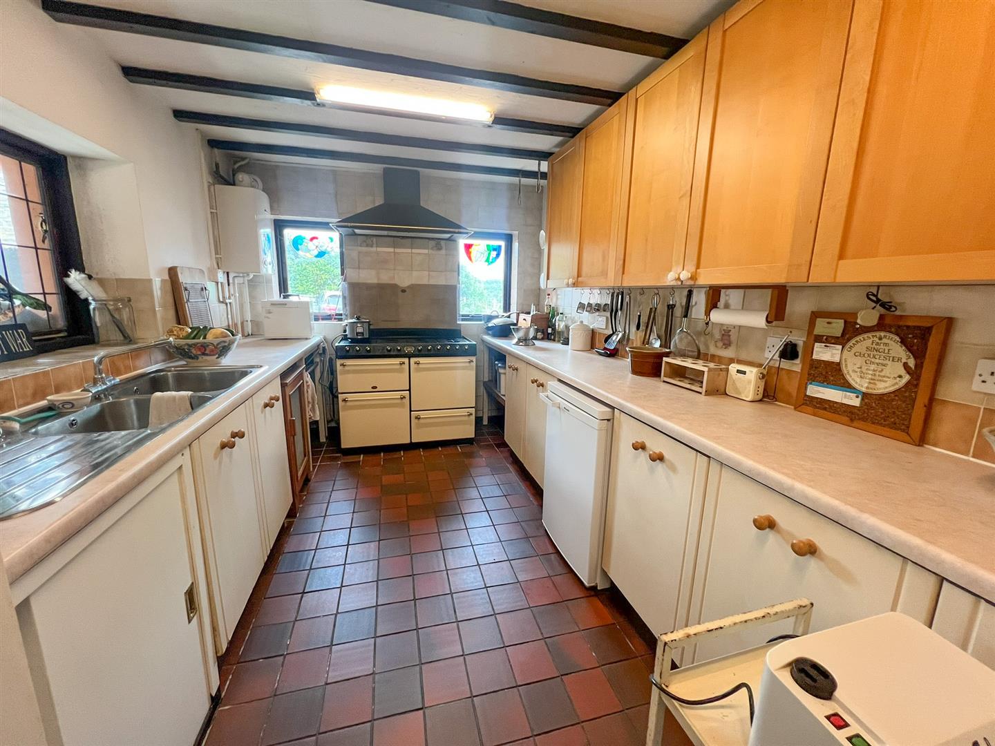 Scullery - 3.96m x 2.59m (13'00 x 8'06) - Ceiling timbers, ceiling lights, double bowl single drainer sink unit with mixer tap over, rolled edge worktops, range of base and wall mounted units, tiled surrounds, power points, space for range style cooker with filter hood over, wall mounted gas fired central heating and domestic hot water boiler, quarry tiled flooring, two side aspect sealed unit double glazed windows overlooking the courtyard parking area, front aspect window overlooking the front garden.
