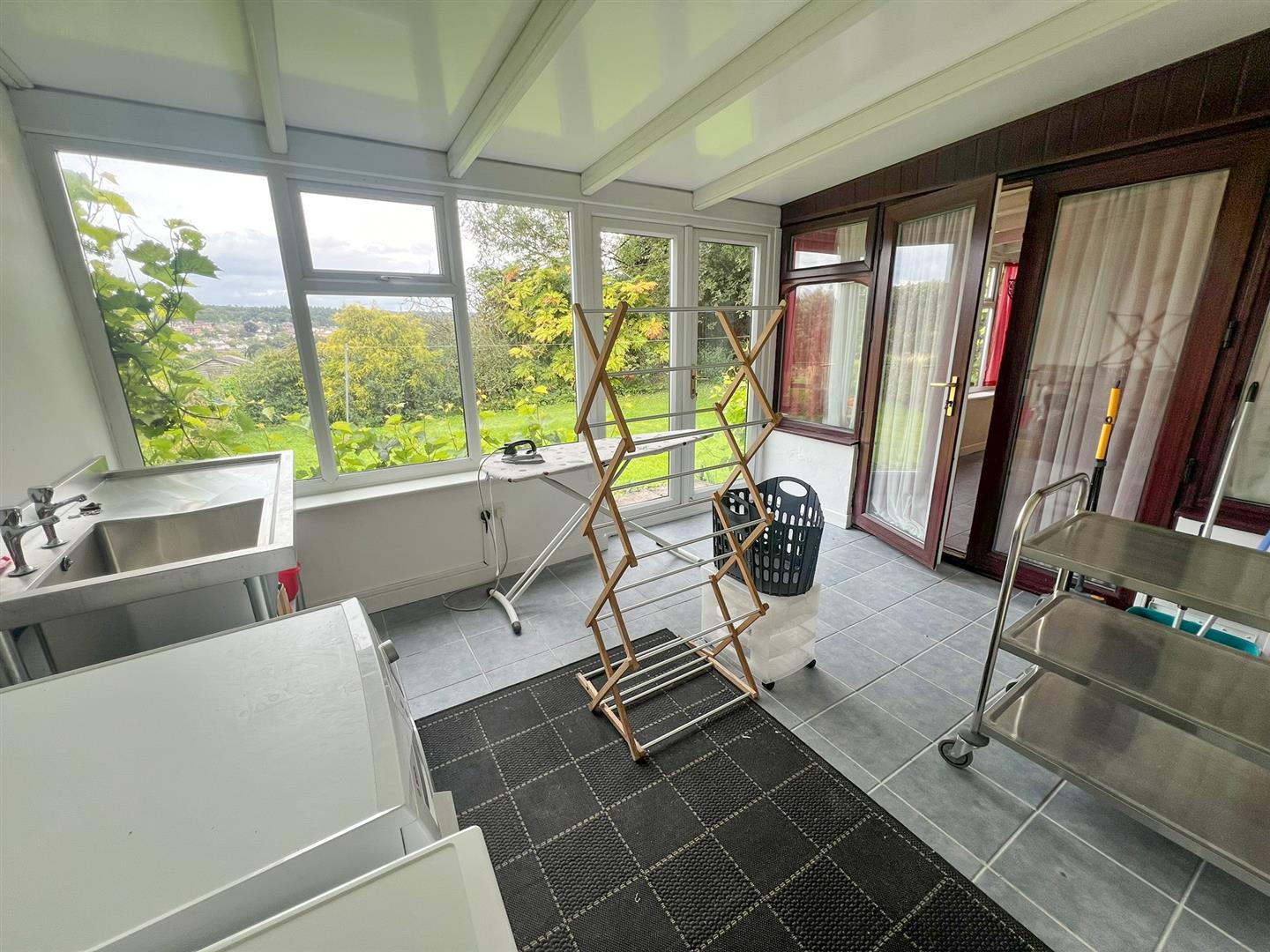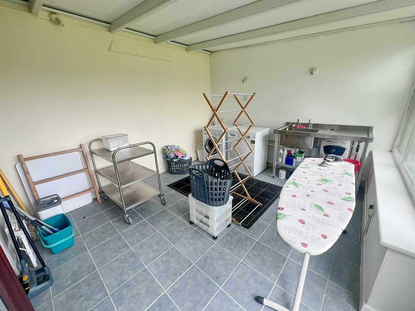 Laundry Room - 3.71m x 3.12m (12'02 x 10'03) - Aluminium insulated roof, dwarf wall construction, upvc glazed windows, tiled flooring, power points, plumbing for automatic washing machine, space for tumble dryer, freestanding stainless steel single bowl, single drainer sink unit with taps and shelving beneath, French doors opening onto the rear garden.