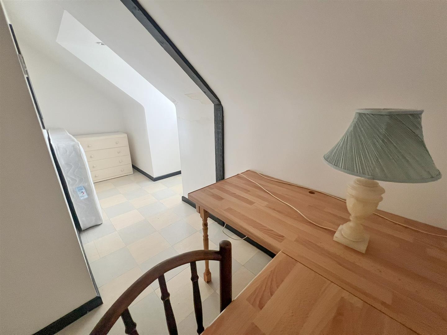 Inner Hallway - Sloped ceiling with exposed ceiling timbers, wall light points, double radiator, power points, access to eaves storage space, front aspect roof light, sliding door giving access into: