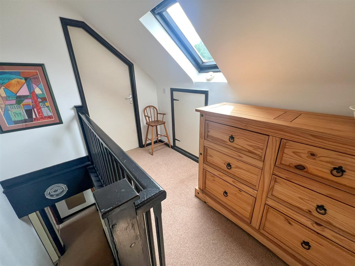 Second Floor Landing - Ceiling light, roof light, lead light window, access to eaves storage space, doors giving access into: