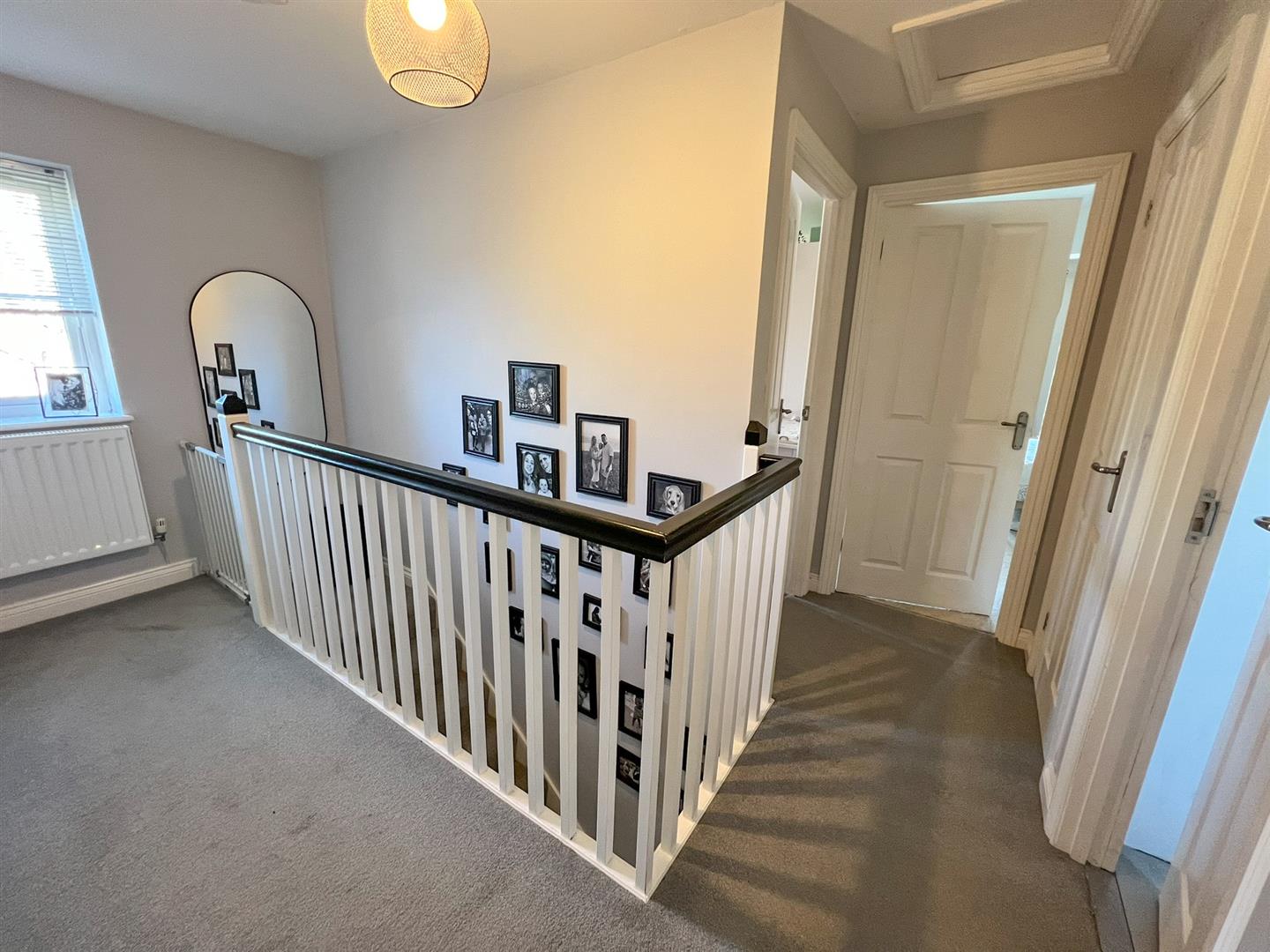 Landing - Ceiling light, mains wired smoke alarm system, access to roof space, single radiator, power points, door to airing cupboard housing the electric central heating boiler, wooden panel doors giving access into: