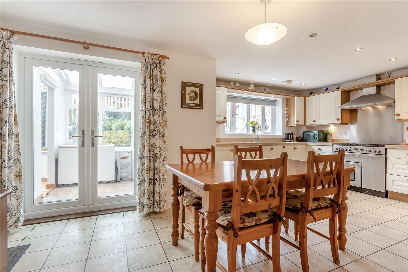 Kitchen/Dining Area - 6.10m x 4.70m (20'00 x 15'05) - Comprising a range of contemporary wall and base level units with smart quartz worktops, inset sink unit with drainer, Rangemaster dual gas/electric cooker with cooker hood over and stainless steel splash-back. Integral dishwasher, space for a fridge/freezer. Tiled floor, radiator, under-stairs storage cupboard, rear aspect window, doors lead to the utility and secondary utility rooms.