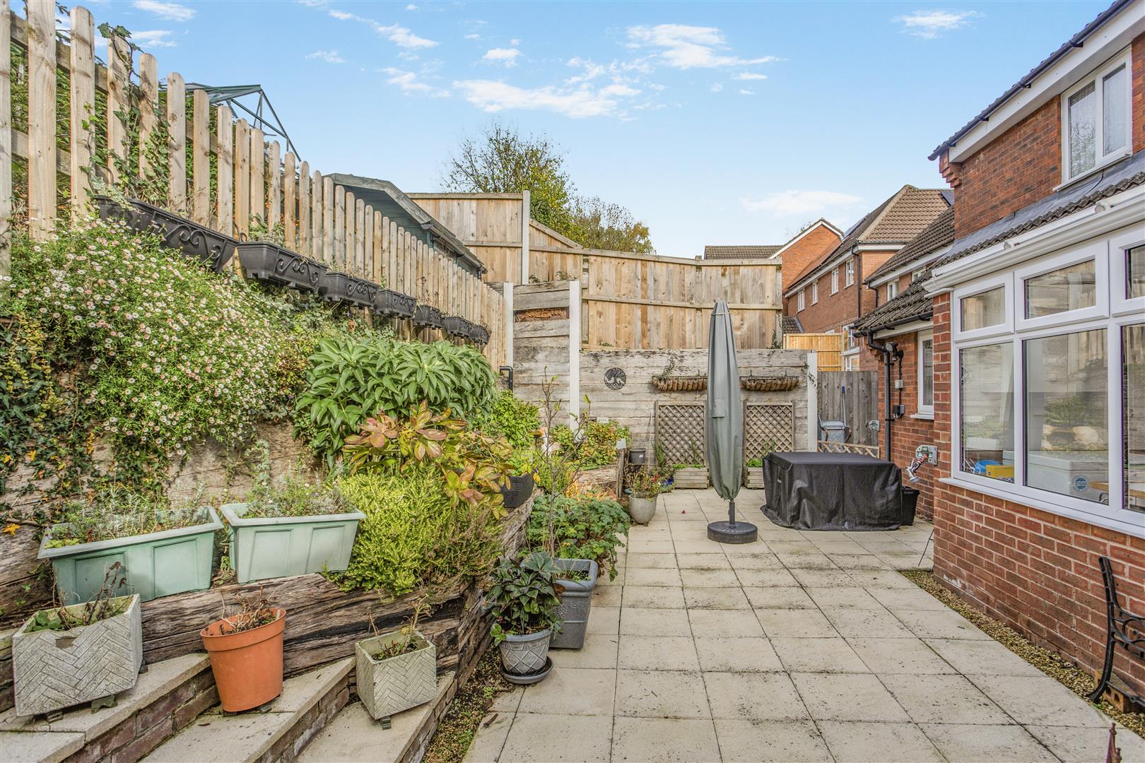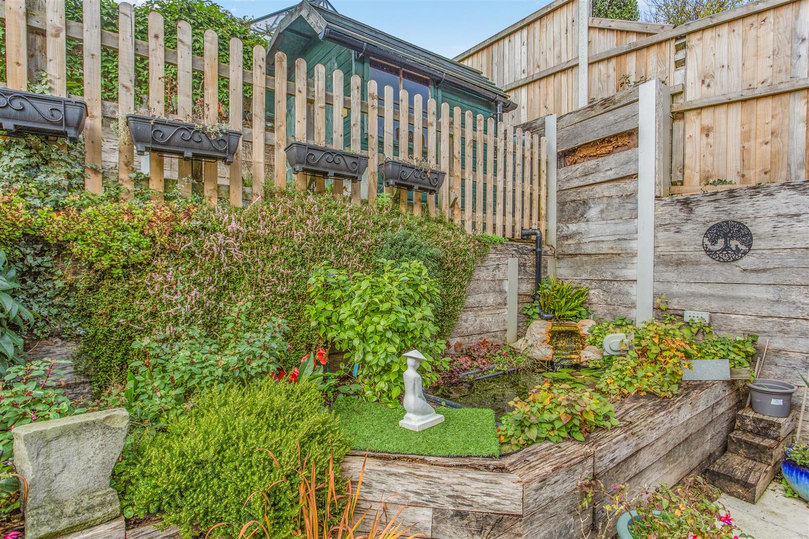 Outside - The west-facing, enclosed rear garden offers a good degree of privacy and is thoughtfully terraced over three levels. The lower level features a patio, a charming raised fish pond, a bin store area, outside tap, power points, and side access. The middle level is a mix of lawn and gravel and includes a practical Dutch barn-style shed. The top level boasts a large powered shed with potential to be converted into a home office or studio, along with a greenhouse and a patio seating area, perfect for relaxing or entertaining.