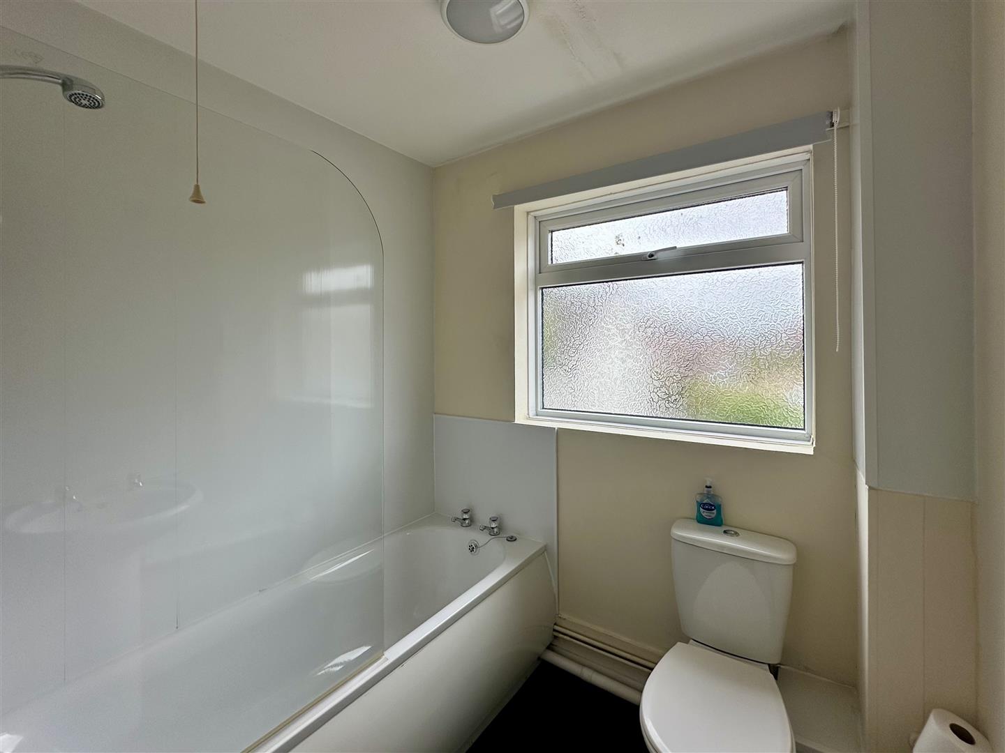 Bathroom - White suite comprising pedestal wash hand basin with a tiled splashback, close coupled w.c., panelled bath with an electric shower over, part tiled walls, shaver point, upvc double glazed opaque window to front elevation.