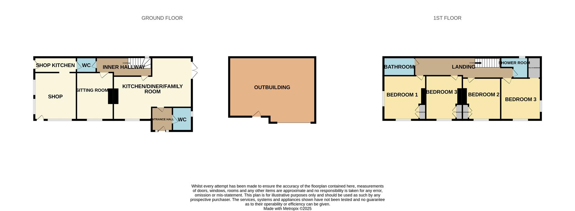 Accommodation comprises hallway, cloakroom, 22ft kitchen/diner/family room with BUILT IN APPLIANCES, sitting room, shop with its kitchen and w.c, bedroom one with a WALK IN WARDROBE, bedroom two, bedroom three, bedroom four, BATHROOM with a white suite and the SEPARATE SHOWER ROOM.