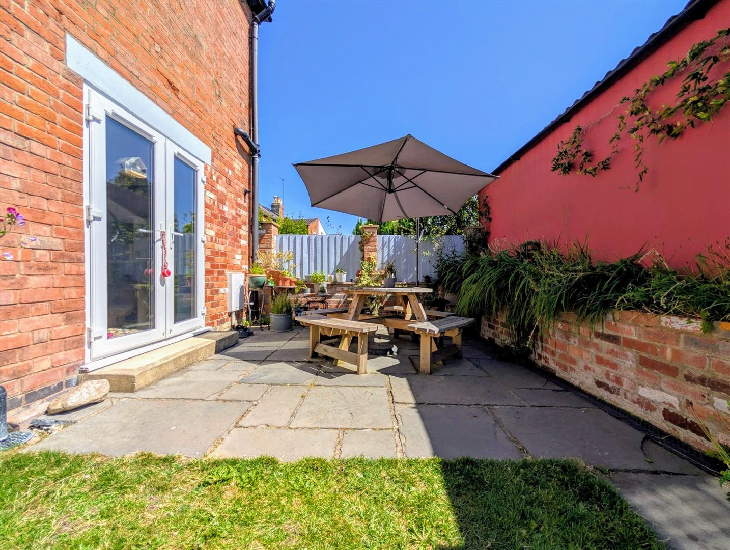 To the rear there is a pleasant courtyard style garden which is paved and leads onto the rest of the garden which is laid to lawn. At the rear there is a: