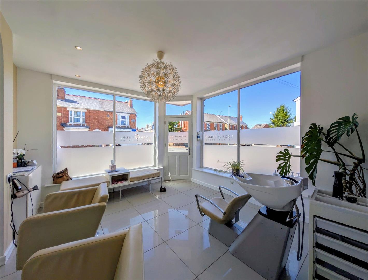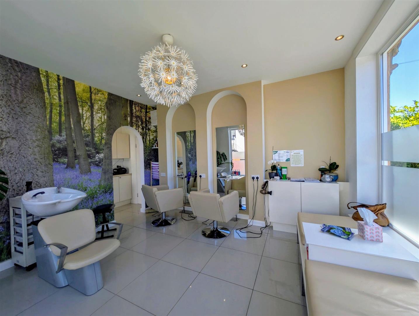 Shop - 4.04m x 3.81m max (13'3 x 12'6 max) - High Gloss tiled floor, windows to front and side elevations, downlighters, power and lighting, archway through to: