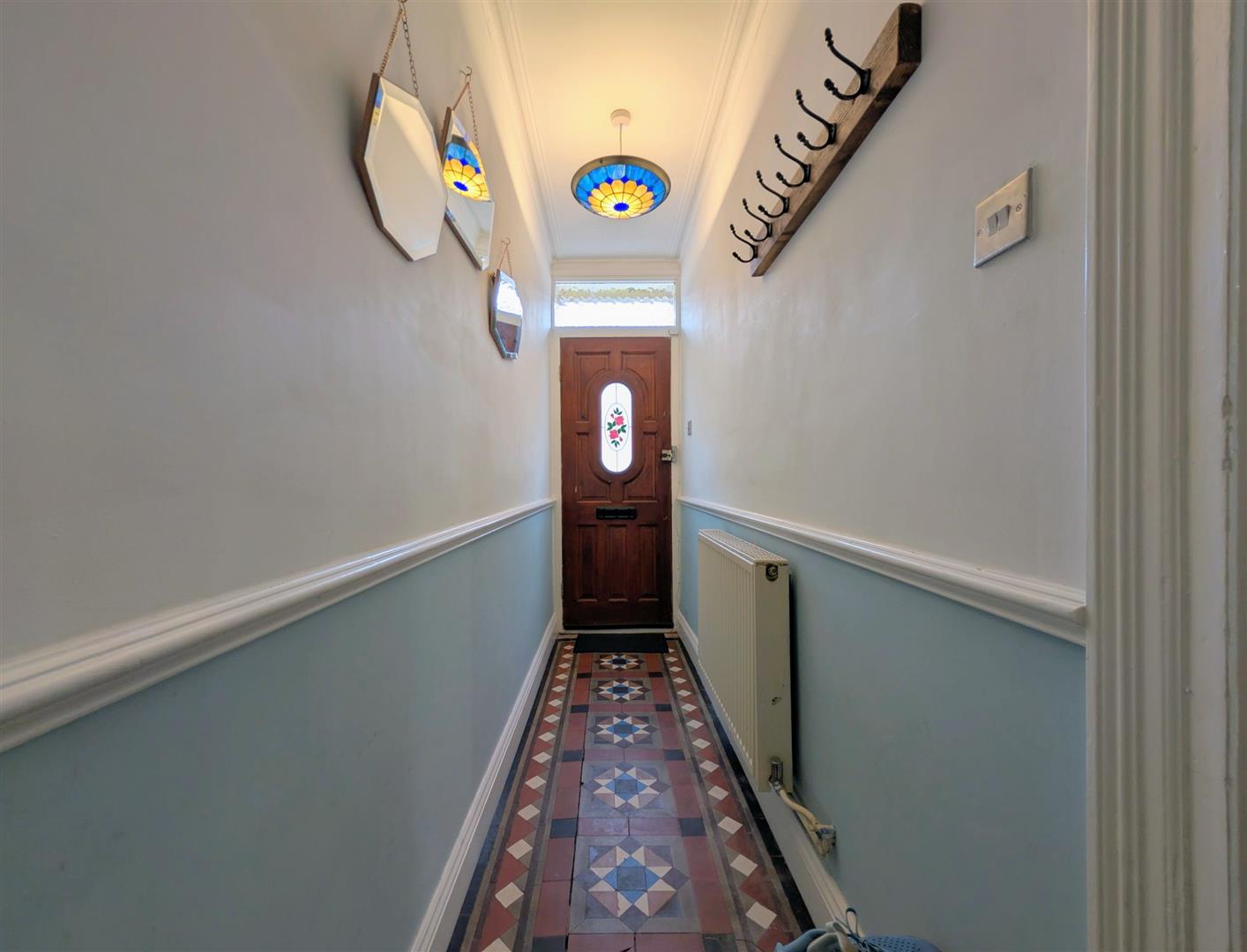 Entrance Hallway - Original ornate tiled floor, double radiator, stairs leading off.