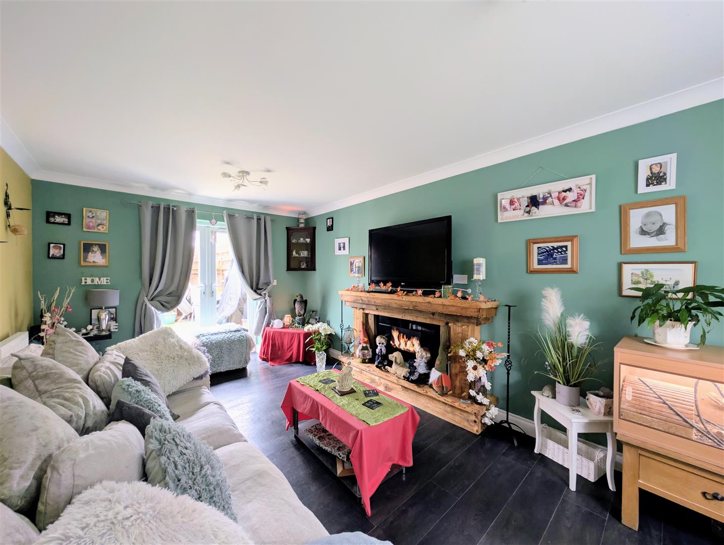 Lounge - 5.51m x 3.18m (18'1 x 10'5) - Ornamental fireplace surround housing an electric fire, tv point, coved ceiling, two single radiators, upvc double glazed window to front elevation, matching French doors to rear elevation onto the garden.