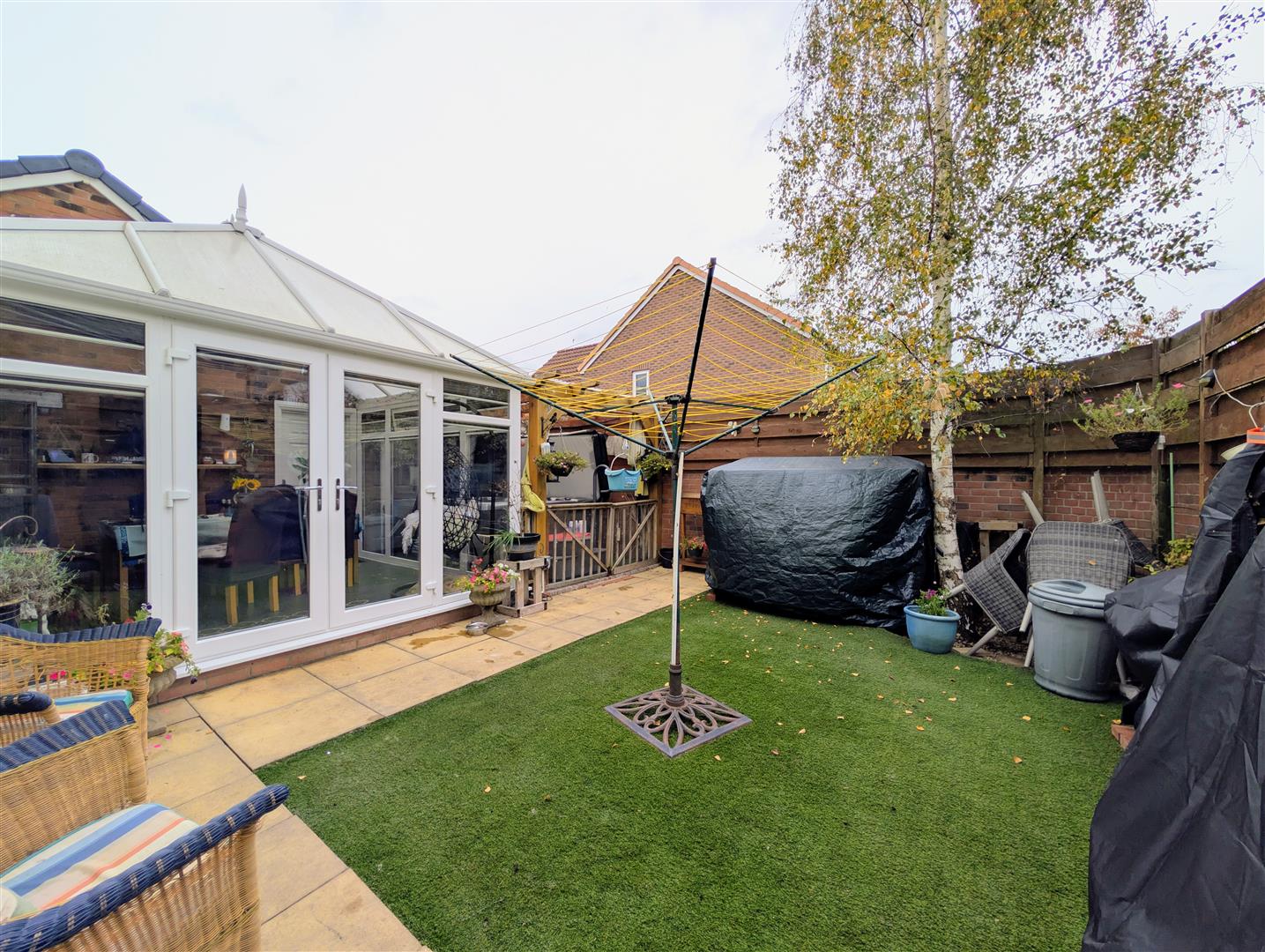 To the rear there is an enclosed low maintenance garden laid to paving slabs, astroturf surrounded by brick walling with a mature tree.