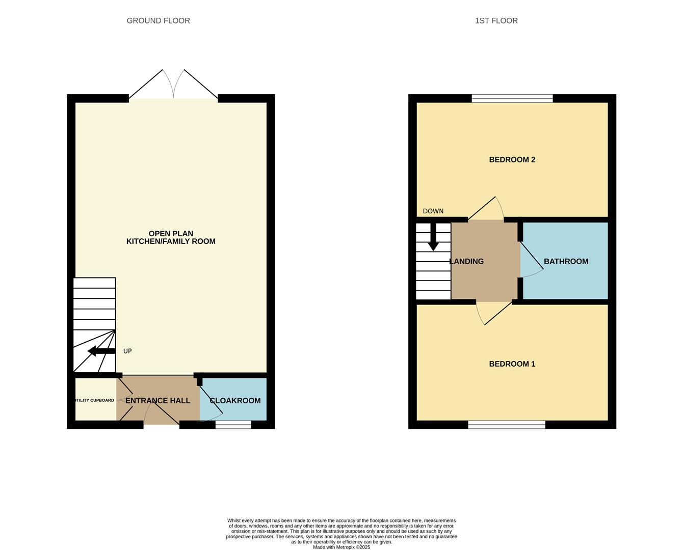 The accommodation comprises entrance hallway, good size cloakroom, utility cupboard, opening through into the open plan kitchen/family room. Whilst to the first floor two double bedrooms and bathroom.