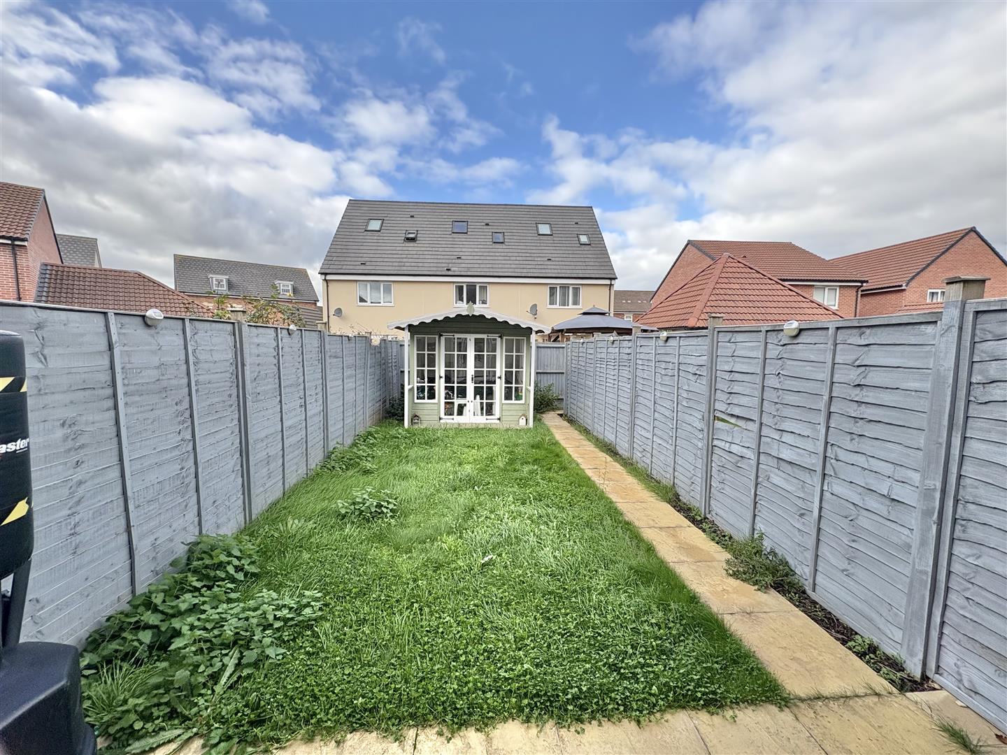 The garden to the rear is mainly laid to lawn with a pathway leading to the rear where there is an access gate. There is also a timber summerhouse.