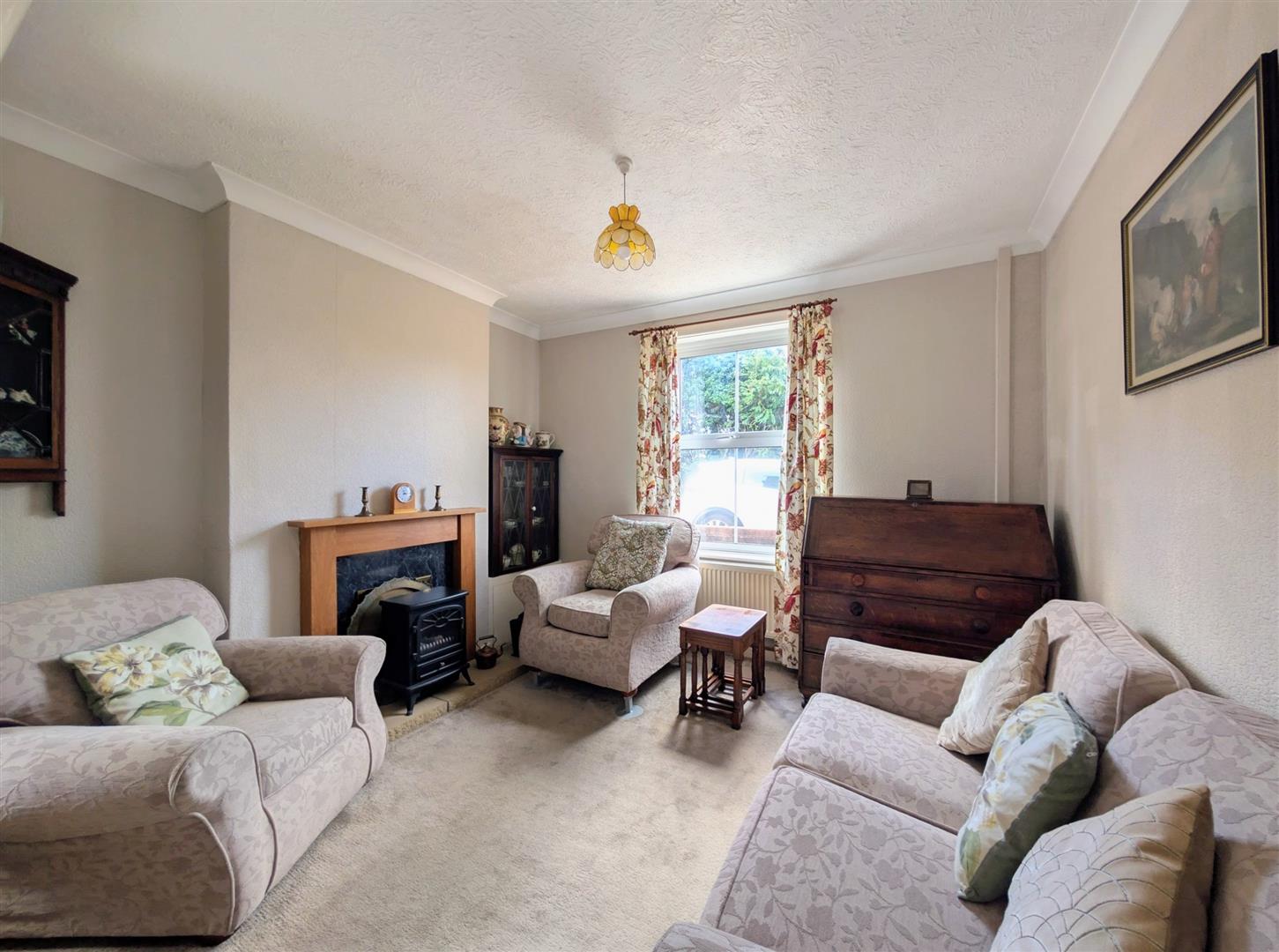 Lounge - 3.43m x 3.05m max (11'3 x 10' max) - Former open fireplace with a wooden surround and paved hearth, double radiator, upvc double glazed Georgian style window to front elevation.