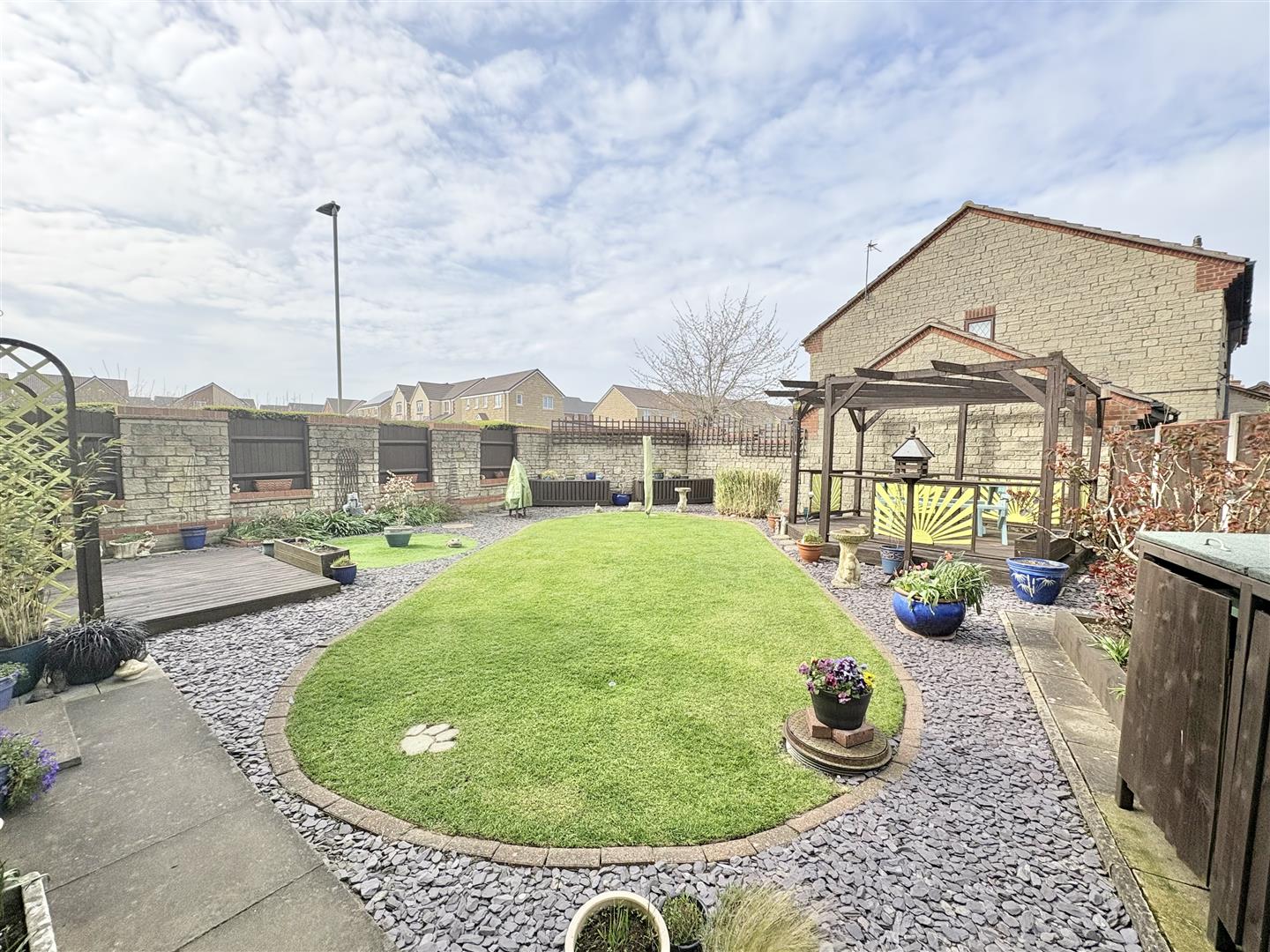 To the rear the gardens are landscaped and South Westerly facing and have a decorative lawned area. two seating decked areas, a timber store shed, decorative stone and are enclosed by a combination of timber panelled fencing and brick walling.
