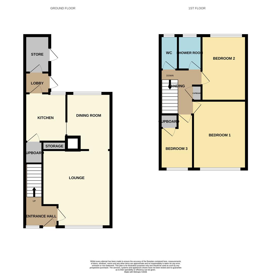 The accommodation briefly comprises lounge opening into dining room, kitchen, three bedrooms, shower room and separate cloakroom.