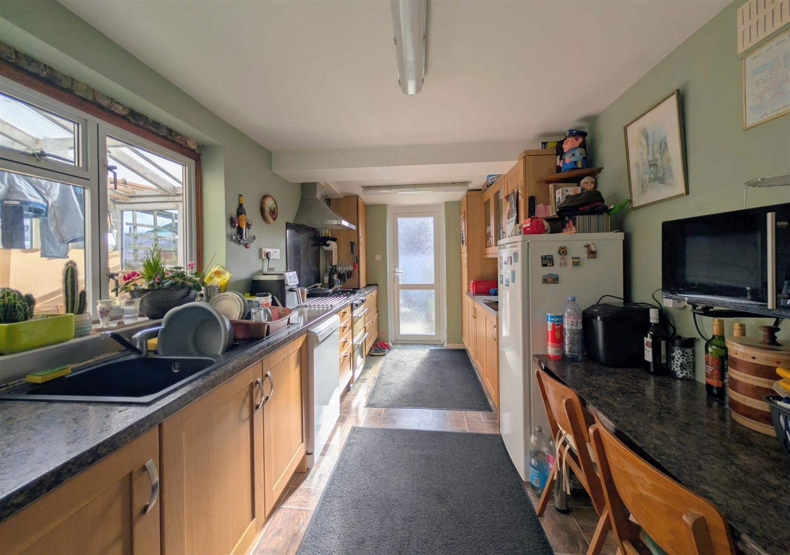 Kitchen - 4.78m x 2.44m (15'8 x 8') - Base and wall mounted units, laminated worktops, single drainer one and a half bowl sink unit with a chrome mixer tap, gas cooker point, extractor hood, plumbing for a dishwasher, breakfast bar, cupboard housing the gas fired combination boiler, upvc double glazed window to side elevation, matching door to rear elevation.