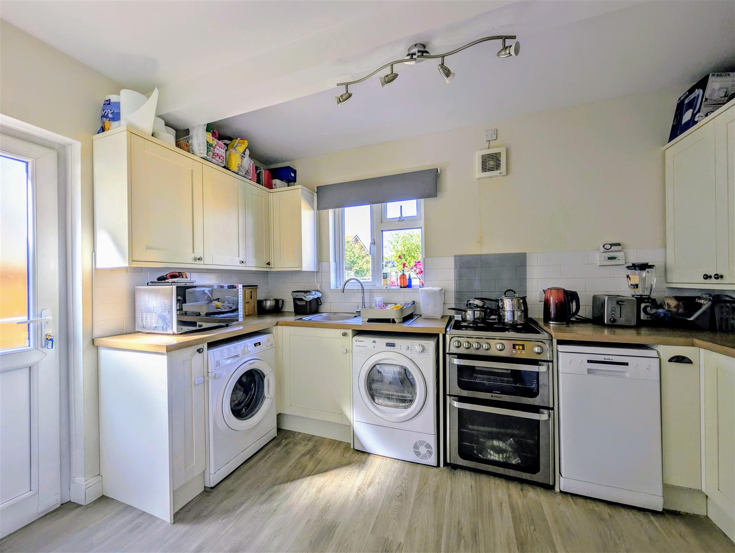 Kitchen - 3.71m x 2.57m (12'2 x 8'5) - Re-fitted kitchen with base and wall mounted units, laminated worktops, tiled splashbacks, single drainer stainless steel sink unit with a mixer tap, electric cooker point, plumbing for a dishwasher and automatic washing machine, cupboard housing the gas fired combination boiler, single radiator, upvc double glazed door to side elevation, matching window to rear elevation overlooking the rear garden.