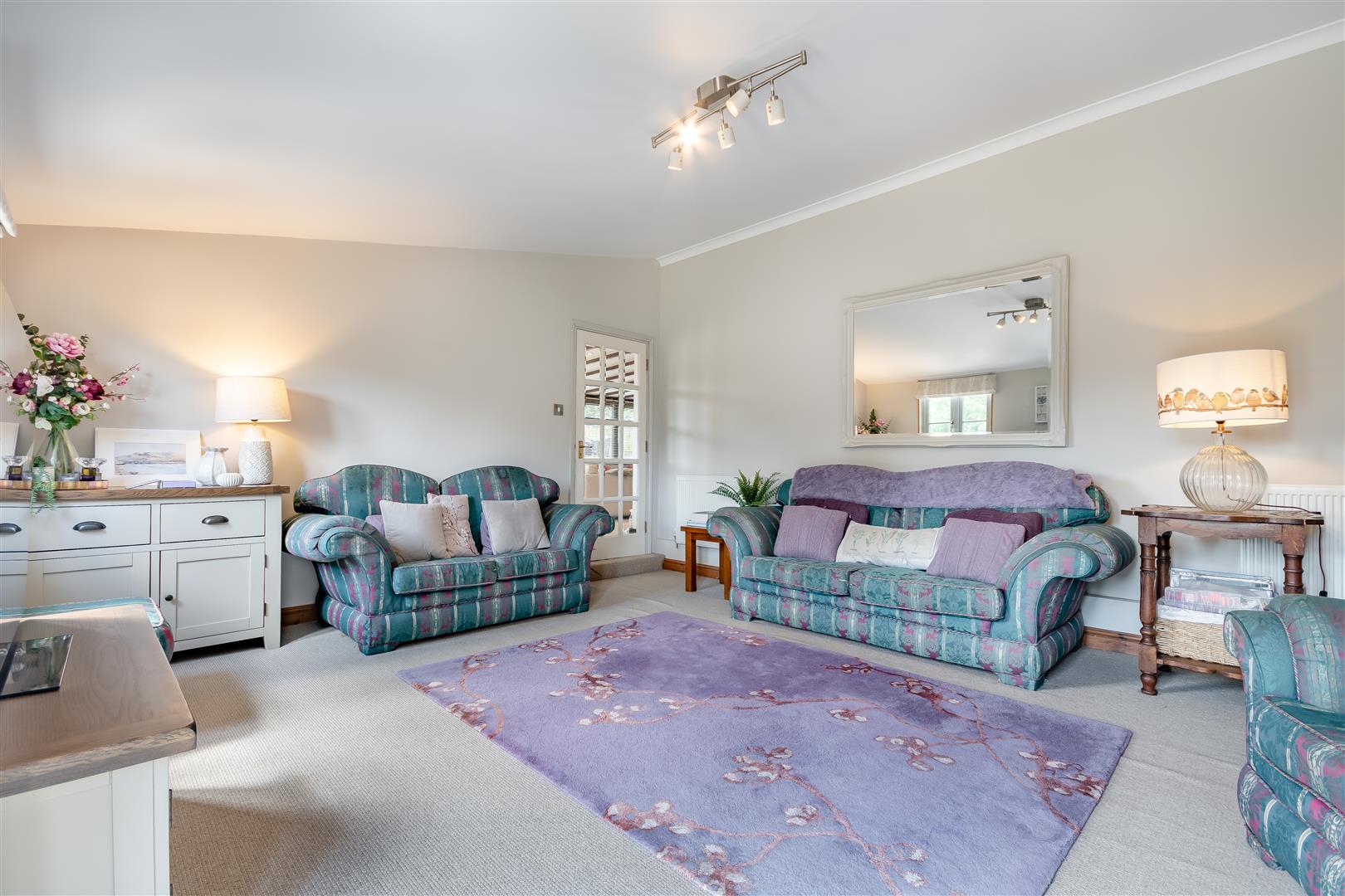 Family Room / Sun Room - 7.19m x 4.45m (23'7 x 14'7) - Double opening French doors to side aspect leading to patio and seating area, large log burner, double radiator, inset spotlighting, front and side aspect windows. Step leads down into: