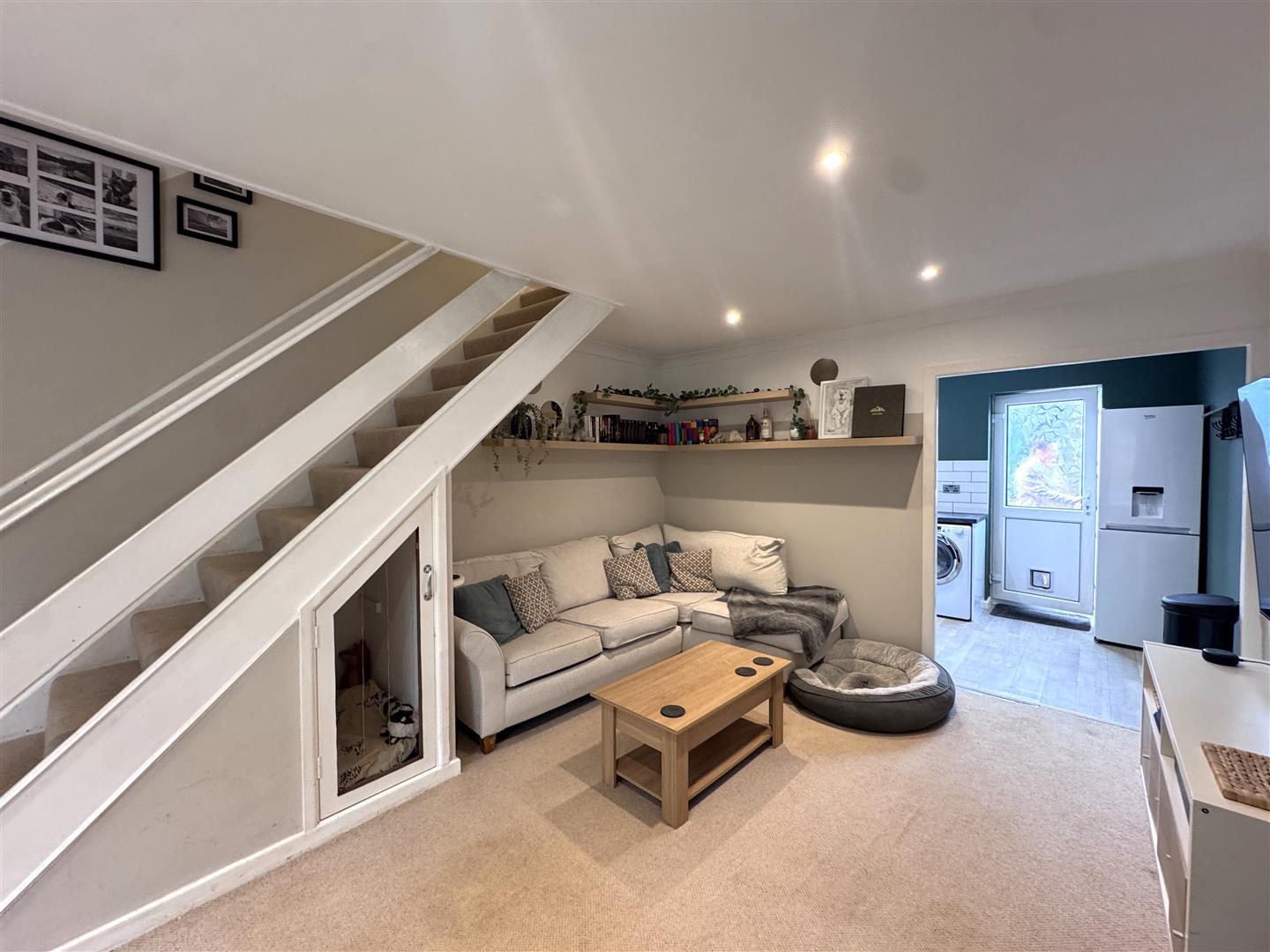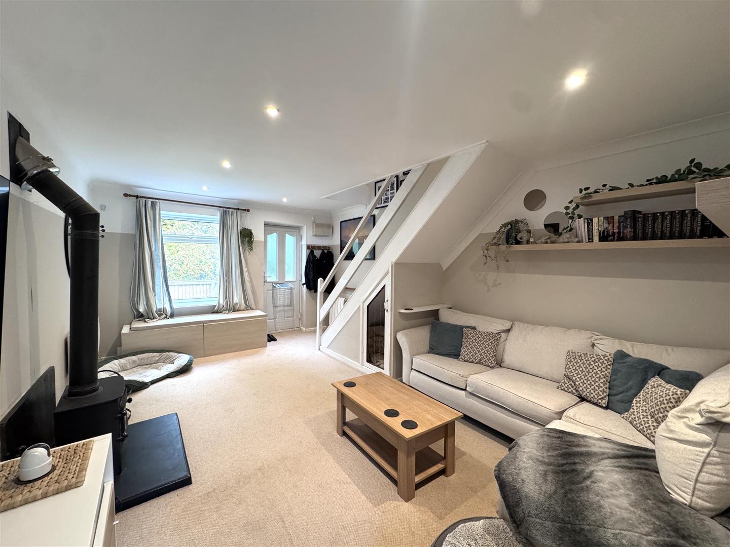 Living Room - 5.36m x 3.58m (17'7 x 11'9) - Fitted wood burning stove, raised hearth, wall mounted electric panel heater, under stairs storage cupboard, front aspect window with a private outlook, stairs to the first floor. Opening through to: