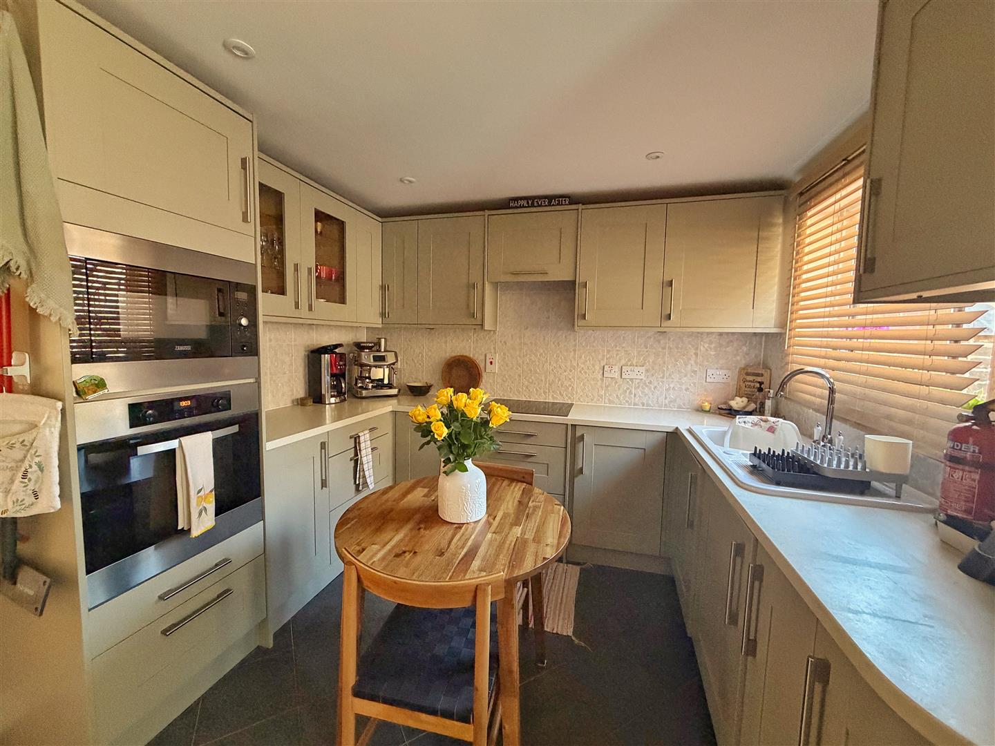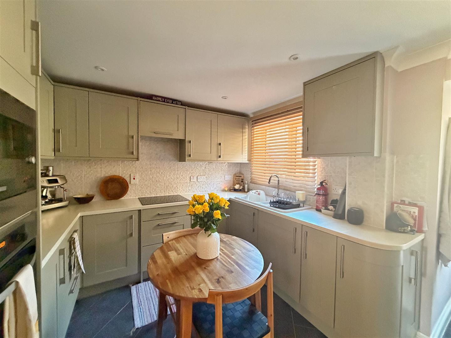 Kitchen - 3.94m x 2.97m (12'11 x 9'09) - Fitted with tiled flooring and a range of base, drawer and wall-mounted cupboards with worktop surfaces over. Integrated four-ring induction hob with fitted electric oven and microwave above. One-and-a-half bowl ceramic sink and drainer with mixer tap. Space for a dining table, washing machine and tumble dryer. Electric radiator, power points and uPVC double-glazed window to the front elevation.