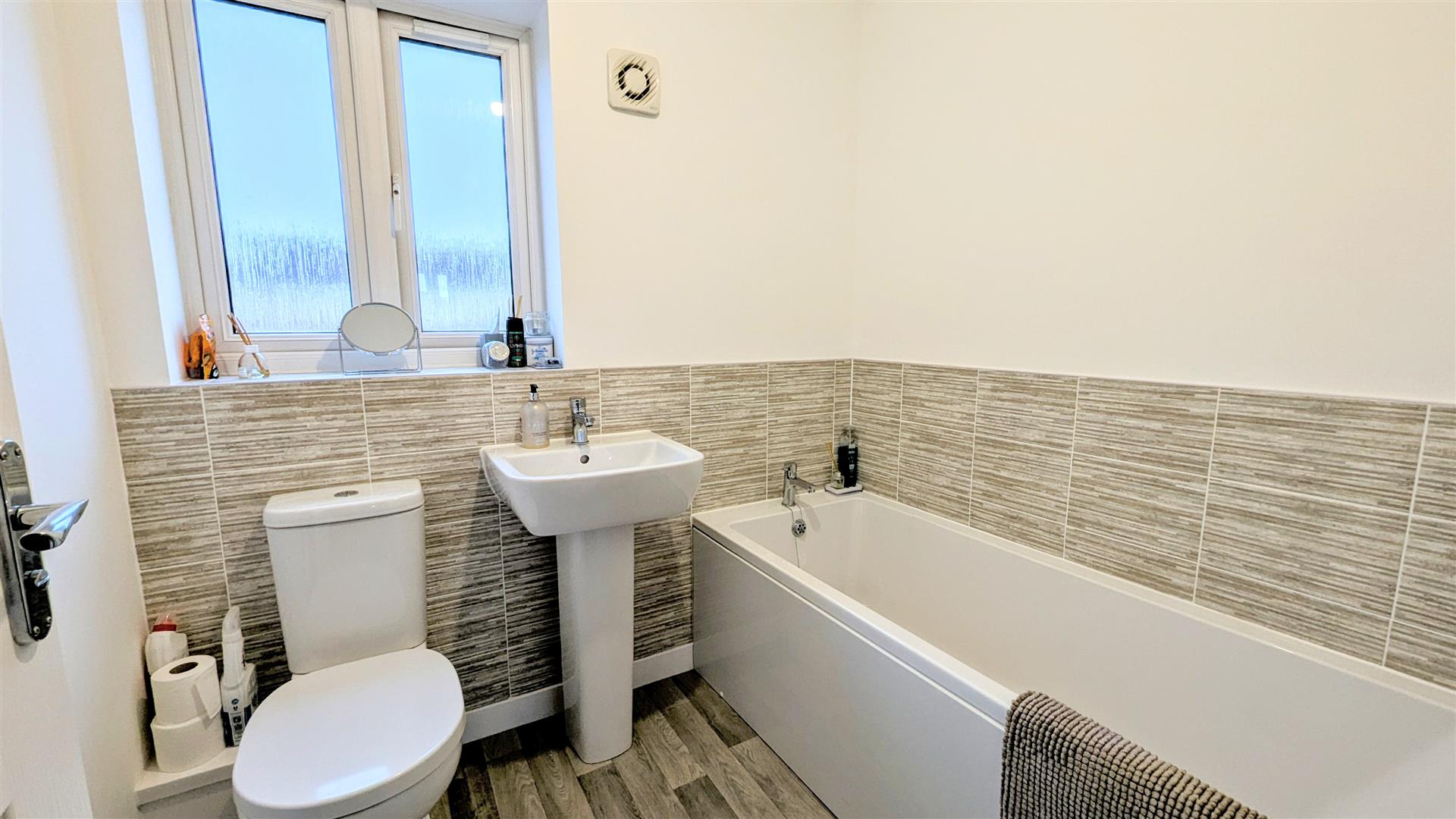 Bathroom - 1.70m x 2.03m (5'07 x 6'08) - Front aspect upvc double glazed frosted window, modern panelled bath with bath taps over, close coupled wc, sink with tap over, radiator, extractor fan.