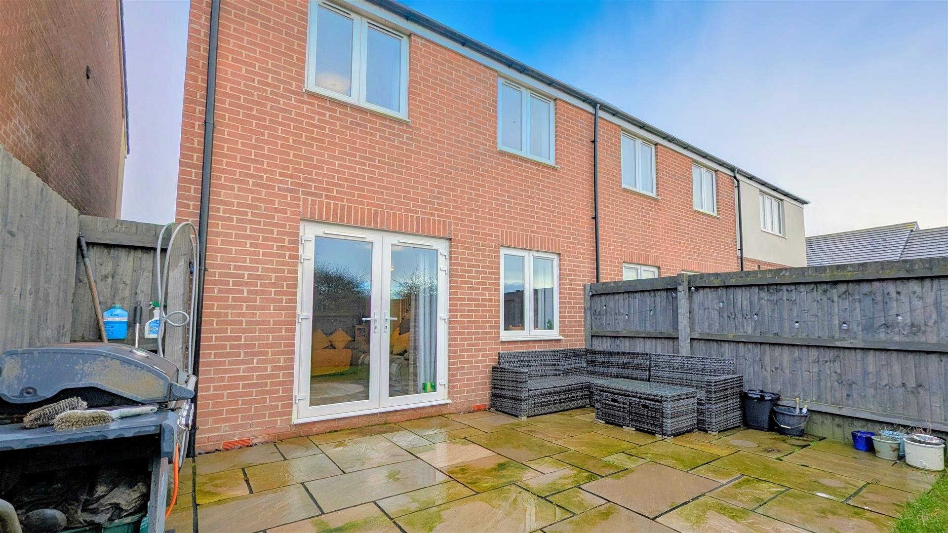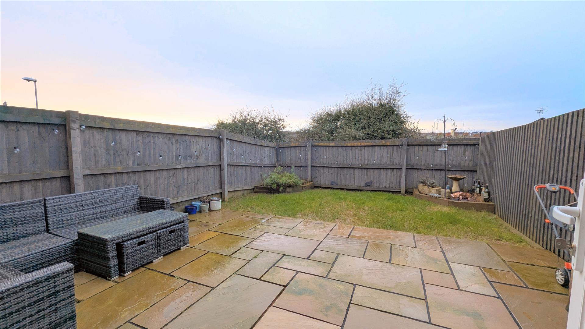 The rear garden has a large entertaining patio area, has side access, a laid to lawn area, two boarders at the rear and is all surrounded by fencing.