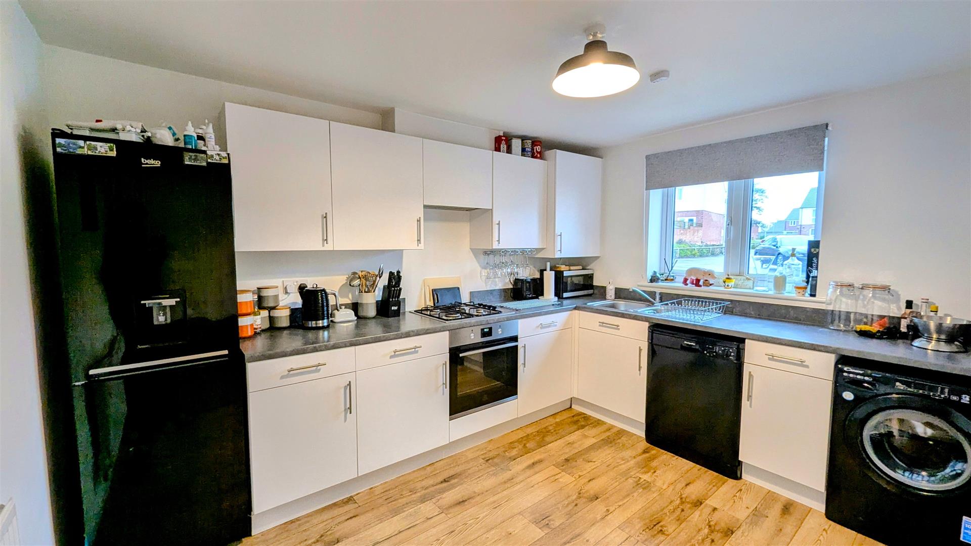 Kitchen - 2.92m x 3.58m (9'07 x 11'09) - Front aspect upvc double glazed window, range of wall, drawer and base mounted units, built in oven, built in four gas ring hob, extractor fan, space for washing machine, space for dishwasher, space for fridge/ freezer, radiator, power points, cupboard housing the Ideal combination boiler.
