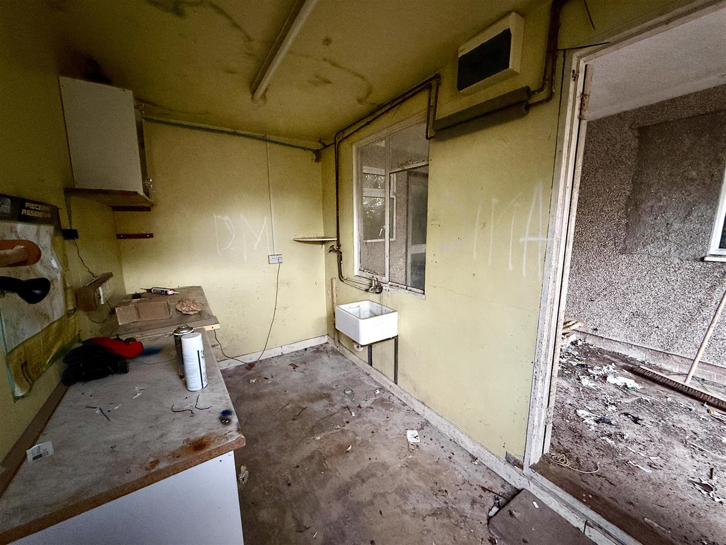 Utility Room - 3.81m x 1.88m (12'06 x 6'02) - Range of wall, drawer and base mounted units, Belfast sink with tap over, strip lighting, side aspect single glazed wooden window, door giving access into garage.