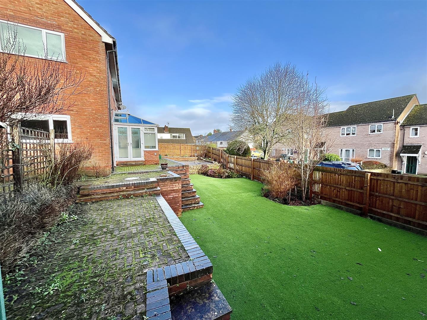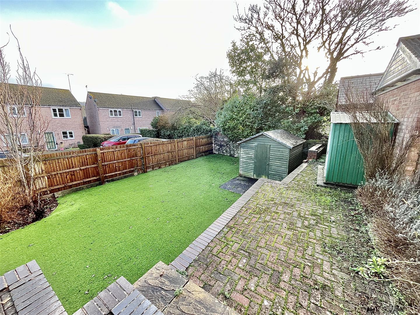 Outside - A gated access to the rear of the property opens onto a patio with planted borders leading to the main entrance. The large enclosed garden provides fantastic spaces for various seating areas as well as having a large lower level astroturf lawn area with attractive planted borders. There is a timber built shed as well as a smaller metal shed.
