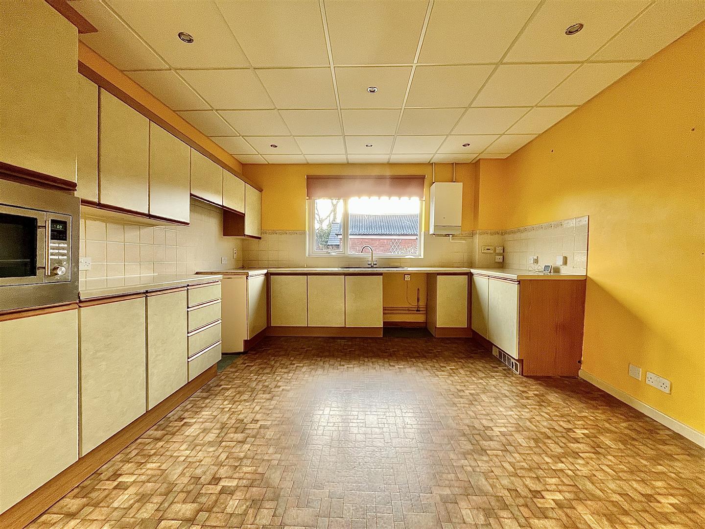 Kitchen - 3.84m x 3.76m (12'07 x 12'04) - In need of some updating with space for a kitchen island, comprising a range of fitted wall and base level units with laminate worktops and tiled splash-backs, inset 1.5 bowl sink unit with drainer. There is space for a gas cooker, plumbing for a washing machine and space for a fridge/freezer as well as benefitting from an integrated microwave oven. Additionally there is a wall mounted gas-fired boiler and a rear aspect window overlooking the garden. Opens through to;