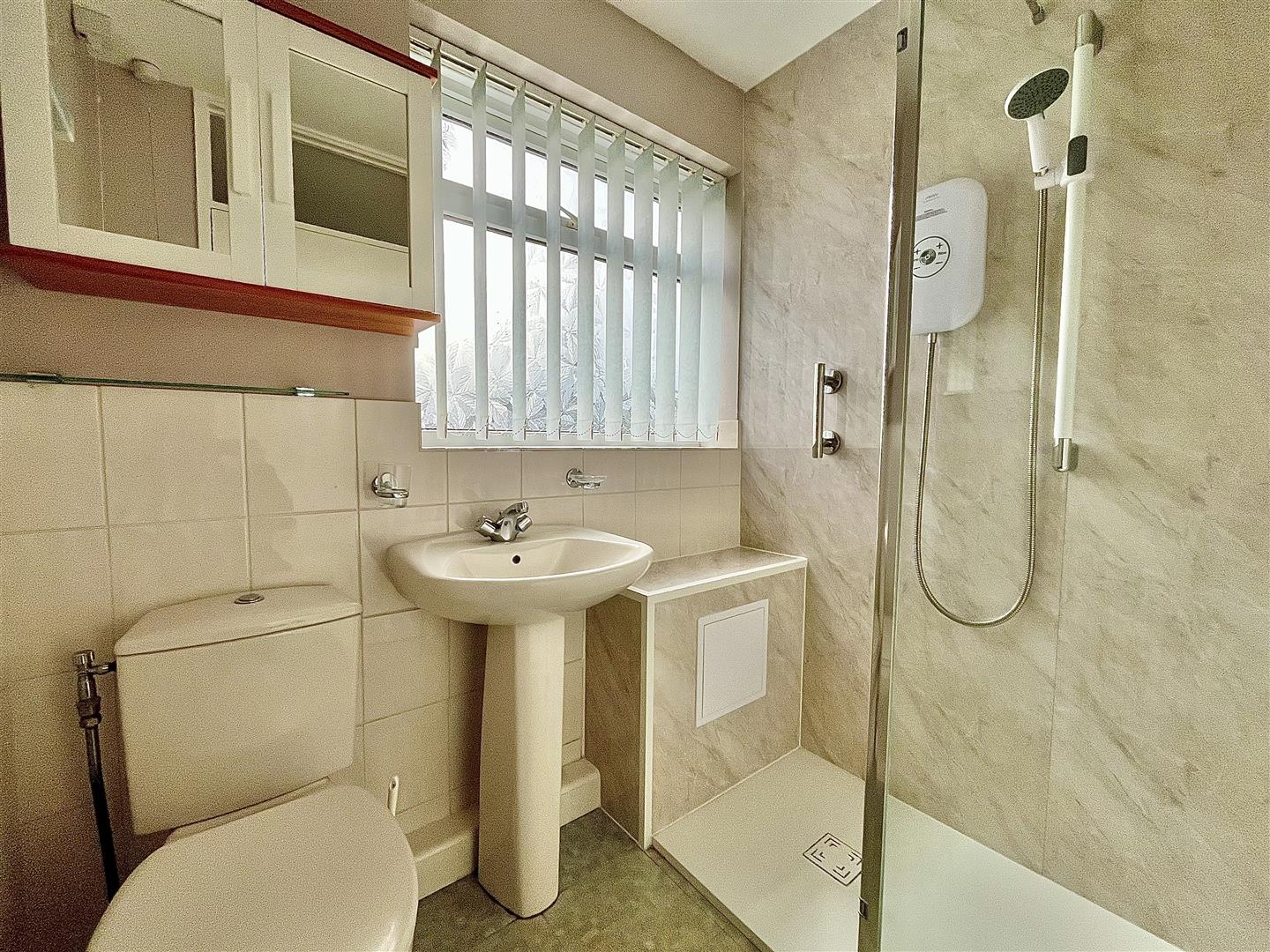 Shower Room - 1.85m x 1.68m (6'01 x 5'06) - A white three piece suite including a double width walk-in shower cubicle with glass screen, close coupled w.c and pedestal washbasin. There are partly tiled walls, radiator and an obscured rear aspect window.