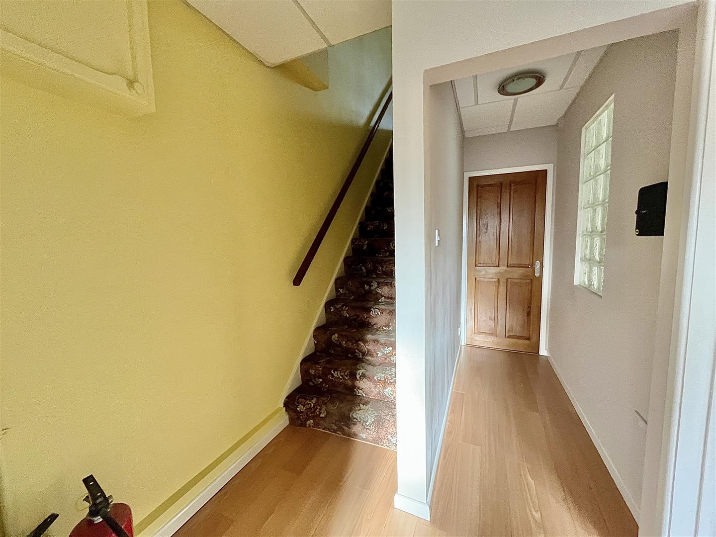Entrance Hall - Radiator, laminate wood effect flooring, large storage cupboard with light, stairs lead up to the first floor landing, doors lead off to the kitchen and w.c