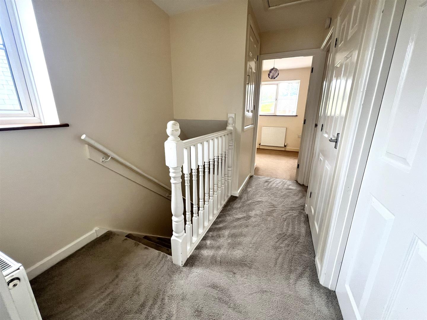 Landing - Access to roof space, ceiling light, door to over stairs storage cupboard housing the gas fired central heating and domestic hot water boiler, door to airing cupboard with slatted shelving space and single radiator, mains wired smoke alarm system, single radiator, power points, side aspect upvc Georgian bar double glazed window, wooden panel doors leading into: